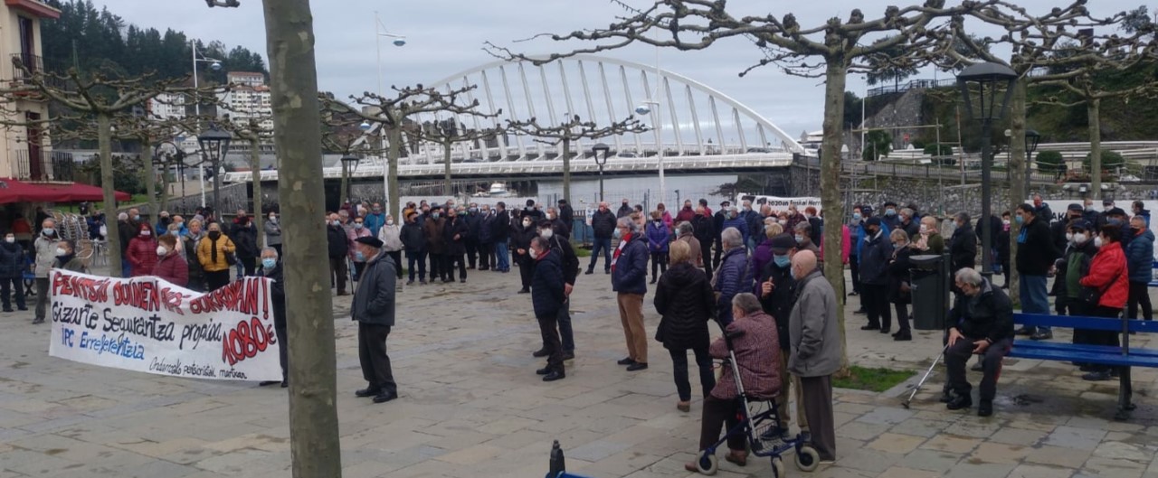 Astelehenero lez Alamedan batu diz gaur be herriko Pentsionistak. 20 minutu bete dabe konzentraziñoin pankarta atzin (PENTSIÑOI DUINAN ALDE BORROKAN!), maskarillak soñin eta alkarrenganako hutsuni lagata. Gaur 164 lagun zenbatutxue antolatzallik ta egun berezixe ixanik, momentuzko jantzixaz agertu diz bozeramallik. Gora gure herriko Pentsionistak eta Gora Athletic!