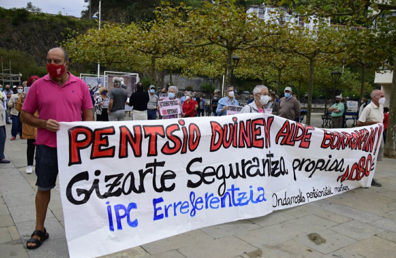 Astelehenero lez Alamedan batu diz gaur be herriko Pentsionistak. 20 minutu bete dabe konzentraziñoin pankarta atzin (PENTSIÑOI DUINAN ALDE BORROKAN!), maskarillak soñin eta alkarrenganako hutsuni lagata. Gaur 164 lagun zenbatutxue antolatzallik ta egun berezixe ixanik, momentuzko jantzixaz agertu diz bozeramallik. Gora gure herriko Pentsionistak eta Gora Athletic!