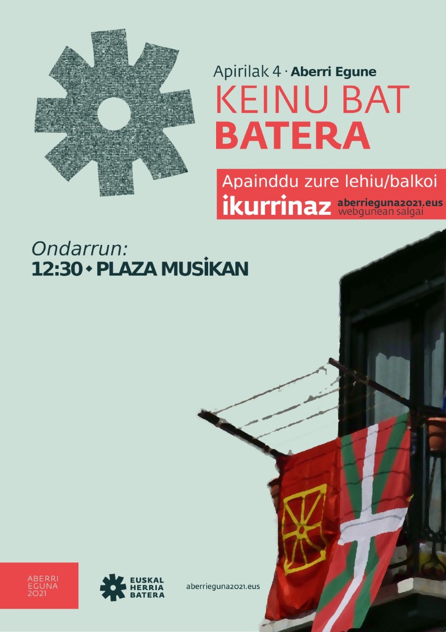 Aurtengo Aberri Egune be berezixe ixango da, mamarru dala ta. Ondarrutarrok Plaza Musikan batuko gaz Apirilak 4 an eguerdiko 12:30 tan, bertan Burujabetzi aldarrikatukou beste herri askotan eingo dan lez. Beti lez, Ikurriñak balkoi eta bentanetan ipinikouz, herri baten parte gazela adierazteko. GUK, GEURI!