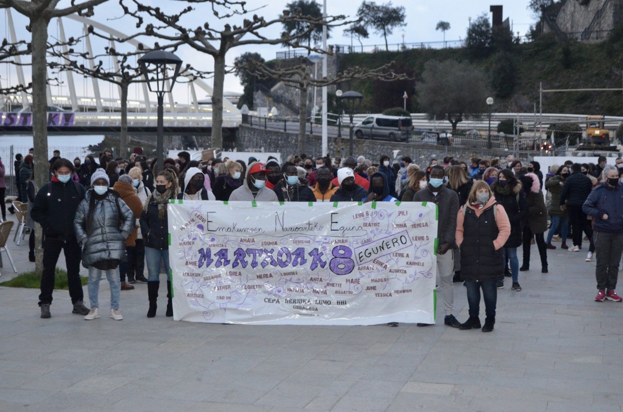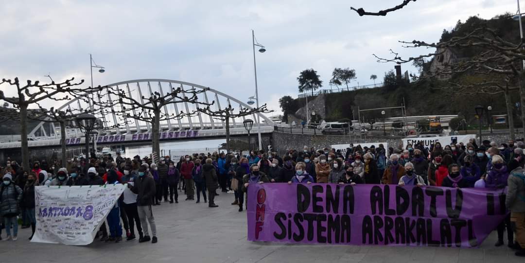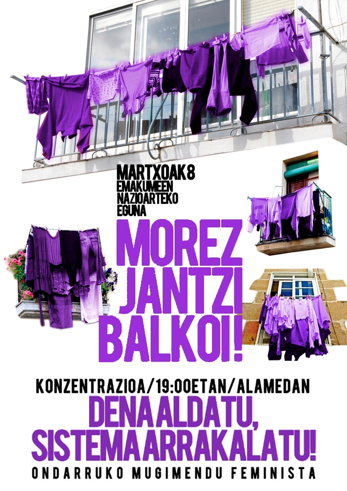 Gaur MARTXOAK 8 ospatukou. Ez gaz etxin geatuko, arratsaldeko 7 etan Alamedan eingo dan konzentraziñoin eongo gaz DENA ALDATU, SISTEMA ARRAKALATU! pankarta atzin ONDARRUKO MUGIMENDU FEMINISTIN deixaz bat etxen, ta gogoratu MOREZ jantzi birdouela gure balkoik.