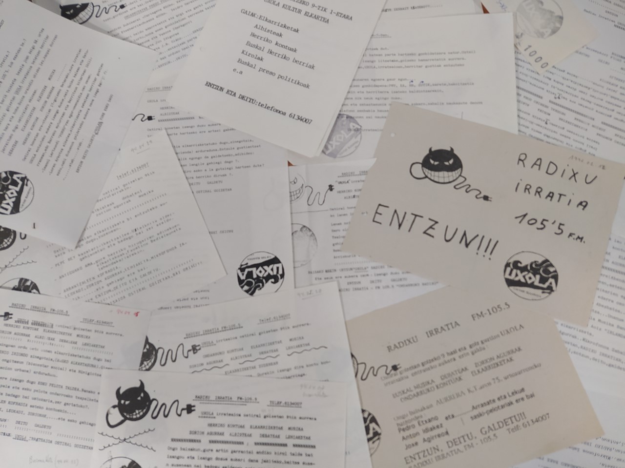 Gu geure artxibuk arakatzen ibili gaz eta UXOLA irratsaiuai buruzko mateixala topa dou, sasoi hartako argazkixak (Ander eta Imanolek etxen ben irratsaiu) eta idatzixak.