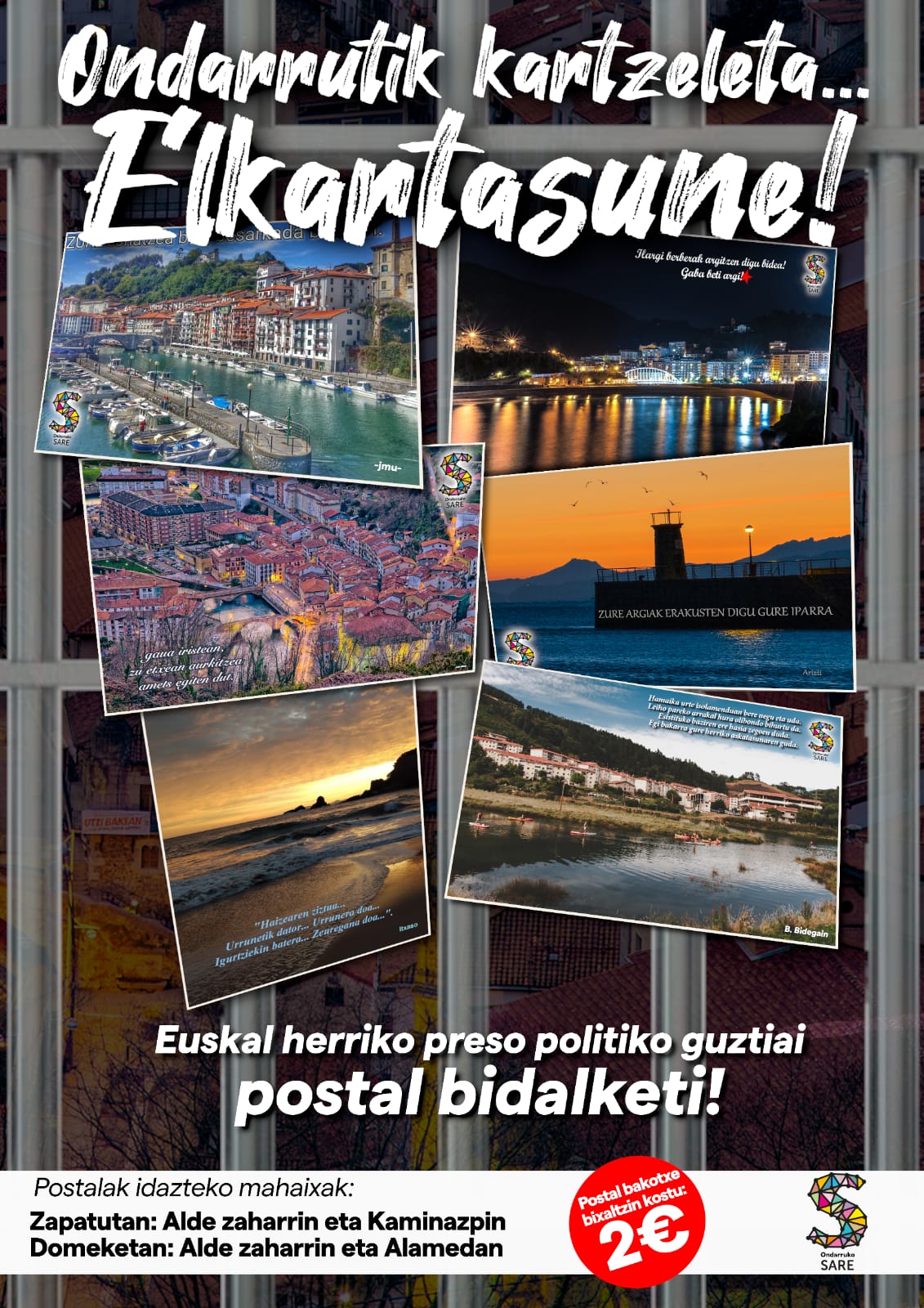 Ondarrutik kartzeleta ELKARTASUNE! Ondarruko SARE tik ekimen barri bateaz gatoz. Ondarrutik euskal preso politiko guztiai elkartasun postalak bixalduko dotsau.