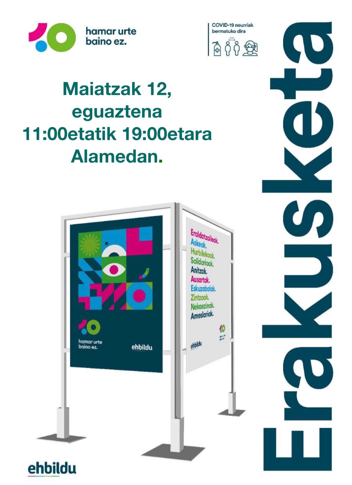 Eguaztenin egun guztin tzir Alamedan eon zan EH Bilduk antolatutako erakusketi panel desberdiñan bitartez. Bertan EH Bildu erakundin 10 urteko ibilbidi erakusten dau ta esanguratsu de panel hauetako baten herrittarrak agertzen dizela.