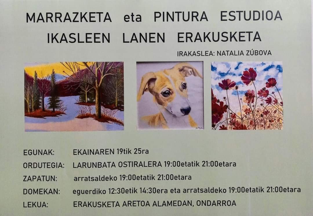 Udal erakusketa aretun eongo diz ikusgai ekainak 19 txik 25 ea, egunak eta ordutegixak behian dan kartelin ikusikozue. Hurreatu ta ikusi zelako lanak etxetxuen herriko artistak NATALIA ZUBOVA irakaslin laguntziaz.