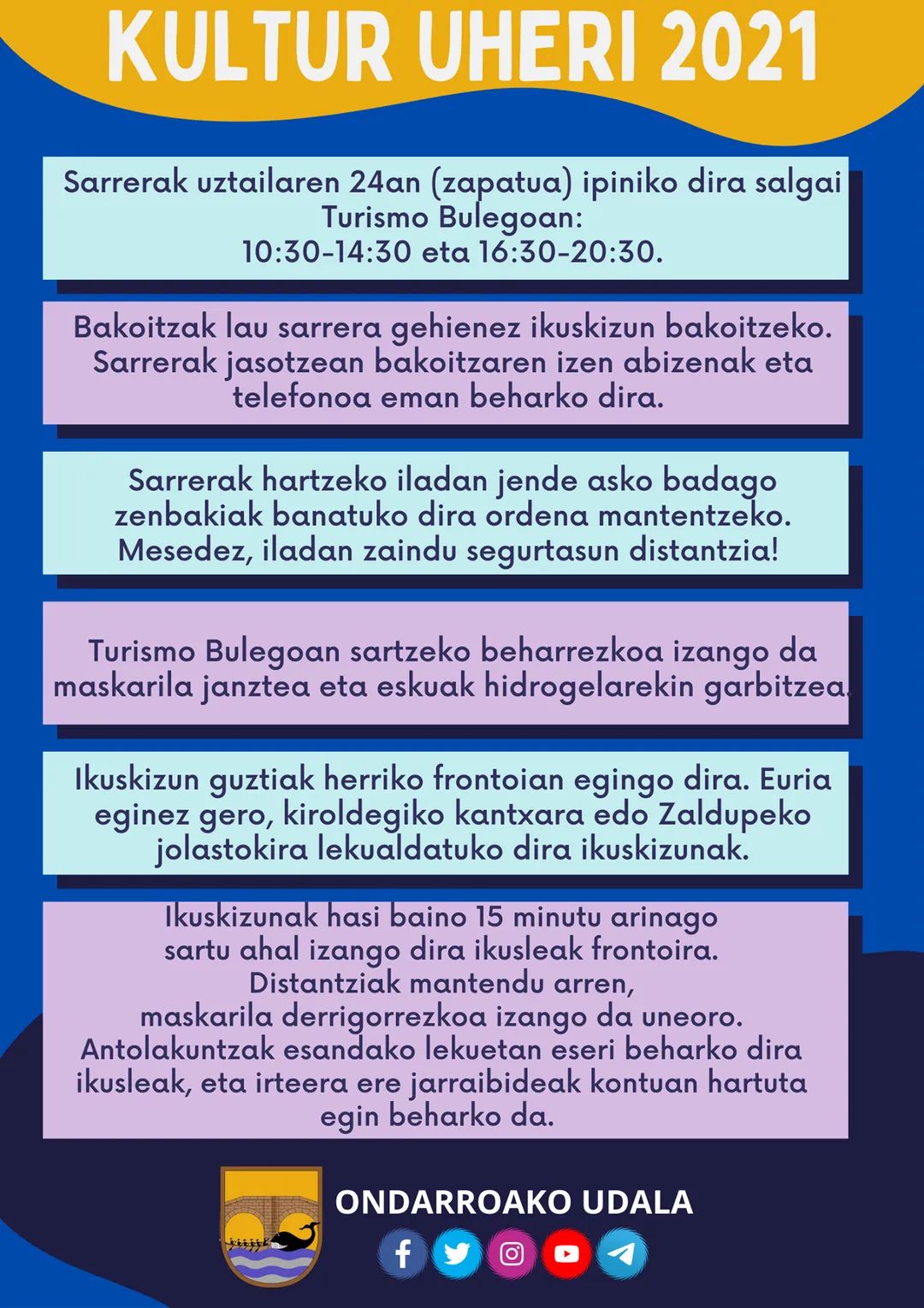 Ongoxe Zapatun ipiniko diz saltzen Kultur Uheri ekimeneko sarrerak Turismo Bulegun, 10:30etik aurrea. Honek diz sarrerak erosteko eta ikuskizunetarako jarraibidik.