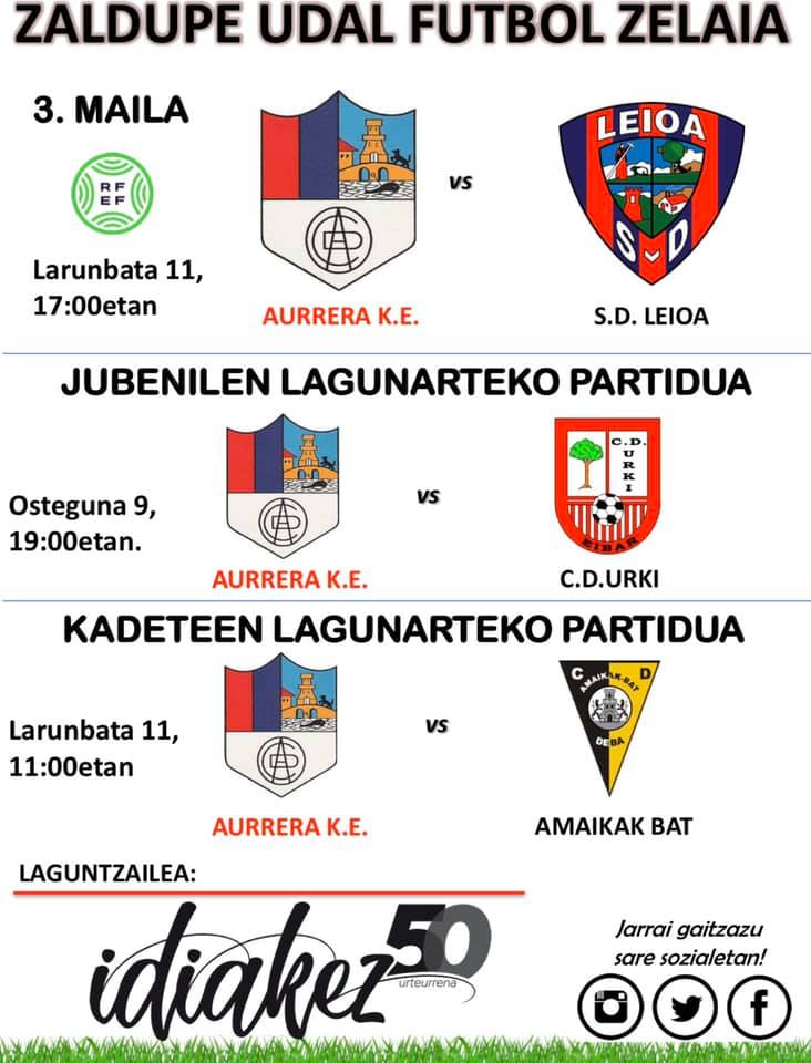 Geldi geldike bada be herriko futbol talde desbardiñak martxan hasitxe daz. Gaur arratsaldin batzuk eta zapatun bestik Zaldupeko udal futbol zelaxan ikusteko aukeri eukikouz. Hamen AURRERAk ata daben partidun egun eta ordutegixak.