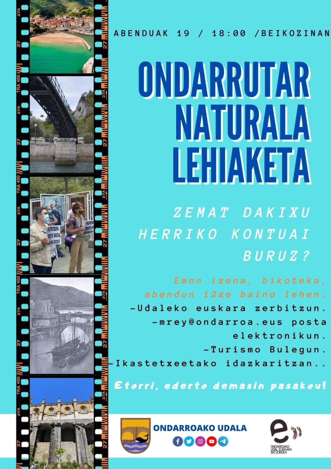 Hasi zaz abendun 19ko Ondarrutar Naturala lehiaketako prestatzen? Zemat dakixu herriko kontuai buruz?Zeren zain zaz ixena emoteko? Anima eta erakutsi zer dakixun! Ixena emoteko epi zabalik da abenduan 12 rarte. Ixen emotik udaletxeko euskara sailin (1.solairun), mrey@ondarroa.eus posta elektronikun edota Turismo Bulegun.