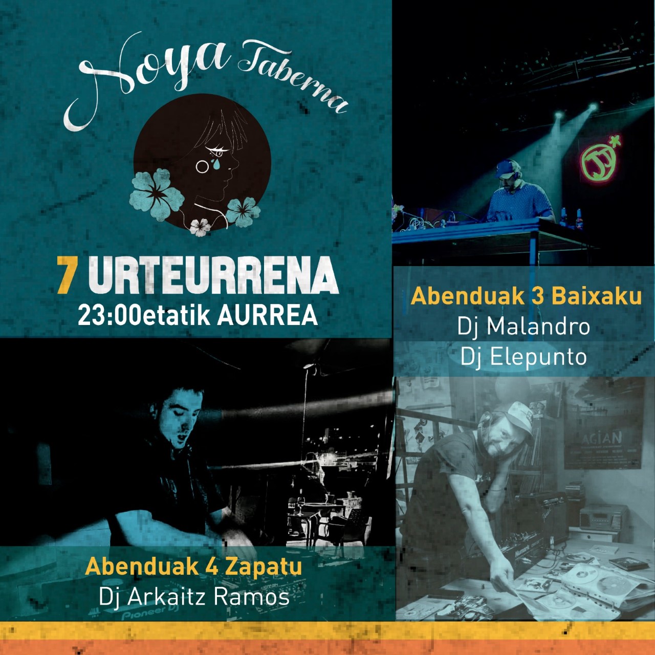 Abendun 3 eta 4 an ospatuko dau NOYA tabernik bere 7. urteurrena ta itxuri emoteko ekimenai DJ xan laguntzi eukiko dau. Baixakun, DJ Malandro eta DJ Elepunto eukikouz illuntzeko 11:00 tatik aurrea ta zapatun DJ Arkaitz Ramos eongo da musiki ipintxen.