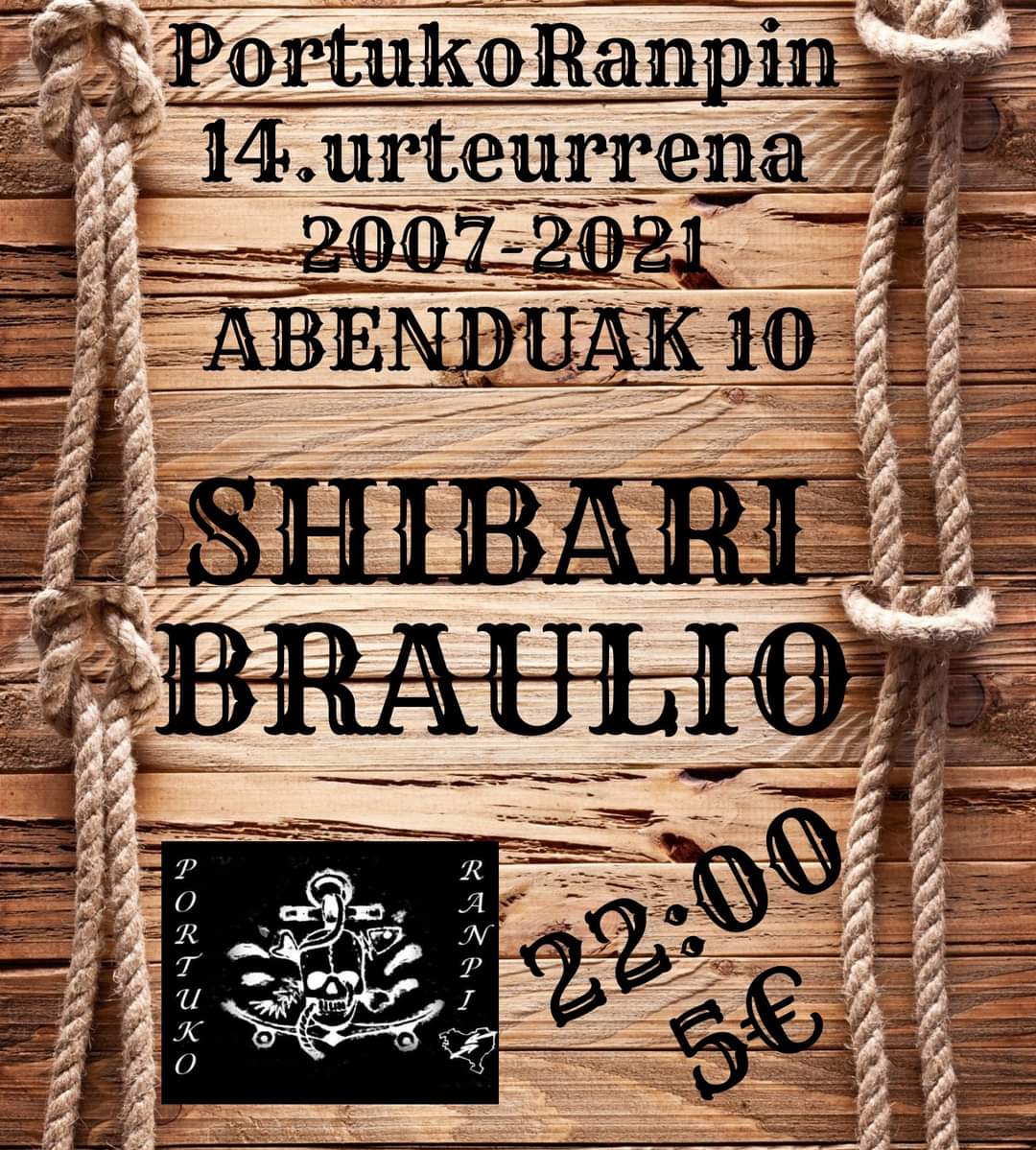 Portuko Ranpin 14. urteurrena ospatzeko kontzertazu eukikou portu aldin SHIBARI eta BRAULIO taldikin gabeko 10 etatik aurrea 5 euron trukin.