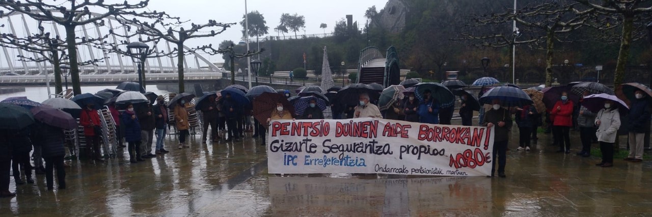 Urteko lelengoko elkarretaratzi eindabe gaur eguerdixan Alamedan herriko PENTSIONISTAK. Aterkin azpixan eta betiko pankarta atzin batu diz gaur 125 lagun eta 20 minutu bertan egon ondoren datorren astelehenin be han egongo dizela gogoratu dozku amaieran.