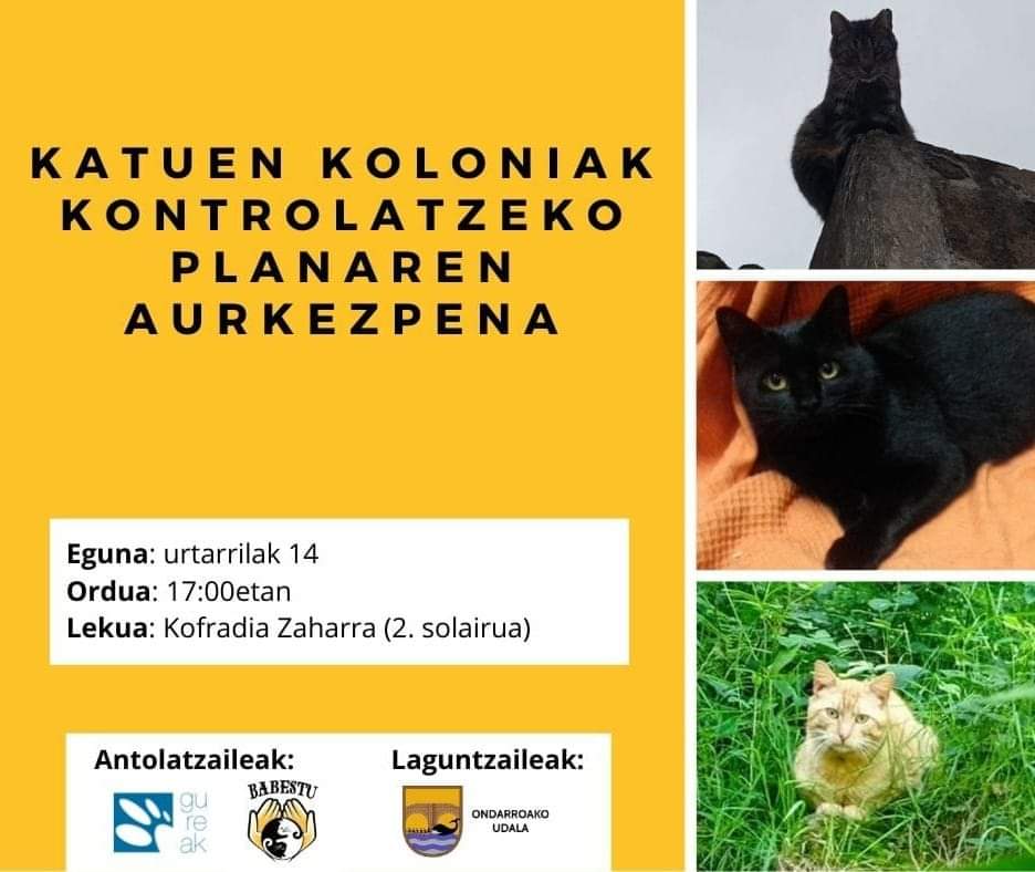 Katun ingurun herrixan dan egoeri konpondu eta irteera bat topateko antolatu de batzar hau. Babestu (katun ingurun sortu dan elkarti) eta Gureak ek antolatu dabe planan aurkezpena eta Ondarruko udala laguntzaille lez agertu de. Batzarra kofrai zaharrin (2. solairun) ixango da aratsaldeko 5 etan.