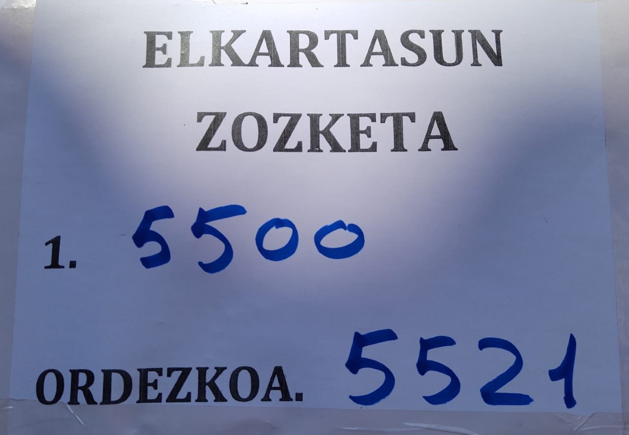 Atzo goxetik hasi eta eguerdirarte egon zin kalekutzeko eskillaretan ELKARTASUN zozketako boletuk saltzen, irabazlik otzara eder bat etxeratzeko. Zer helburuaz? kartzelan eta ihesin dazen herrikidiai laguntza ekonomiku lortzeko. Azpixan agertzen dan zenbakixe daukenai, Zoixonak!