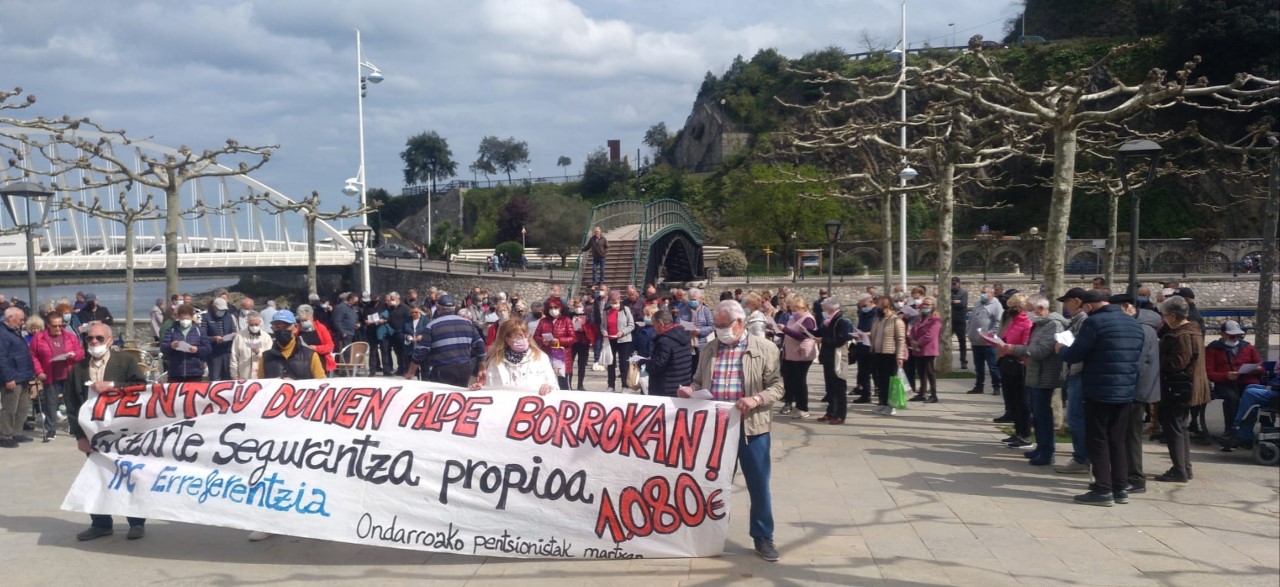 Gaur be Alamedan batu diz herriko PENTSIONISTAK pankarta atzin 12 xak puntun. PENTSIO DUINEN ALDE BORROKAN!, Gizarte segurantza propixu, IPC erreferentzixi ta 1.080 euroko pentsiñoi unibertsala diz euran (danon) eskakizunak. Baten bat horren aurka egon leike? Gaur 173 lagun egon dizela esazku antolatzalletako batek ta datorren astelehenin be han eongo eidi diñozku. Jo ta ke LORTU ARTE!