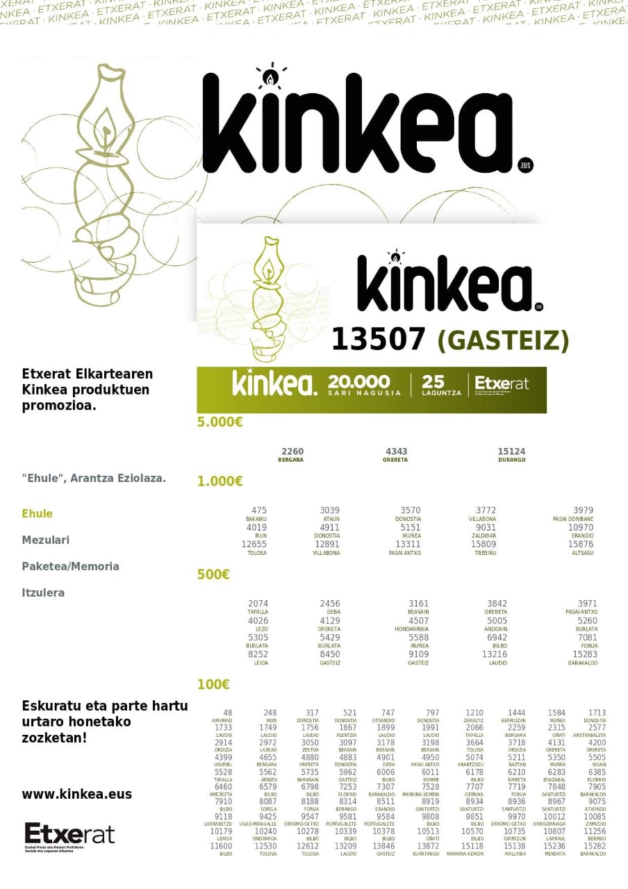 Horrez gain zenbaki honek be sarixe lortu dabe, beatu ia zeuri be toka gatzun. Saritutako zenbakixak daukenak Etxerat-en edozein egoitzatan azaltzeko 60 eguneko epi eukiko dau . Edozein zalantzaren aurrin, http://kinkea.eus webgunin jokun arauak topakozue.