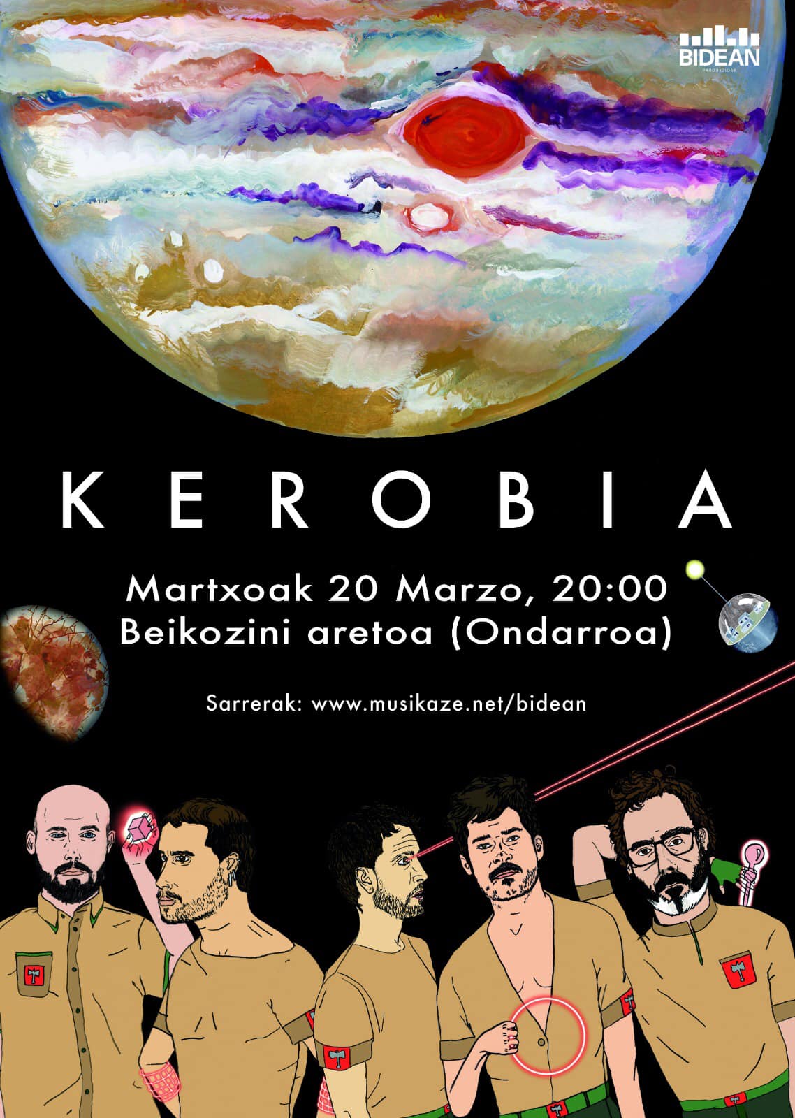 Zuzenin gozateko aukeri eukikou Beikozinin martxoan 20an arratsaldeko 20:0etan. HILAK. Album honeaz bueltan dator KEROBIA. Zortzi abestin bidez taldik etorkizun baten bille lurretik urten ben misioetako tripulatzailin istorixi kontaten dau. Kerobia estiloko lana ehuneko ehunin, inor axolagabe utzi nahi ez dabena, letran gordintasunagatik edo samurtasunagatik dala ta, beran musikin soinu urratzaili edo harmonikoengatik dala ta. Disko bat, edozein plataformatako serie bat ixan daitekena.