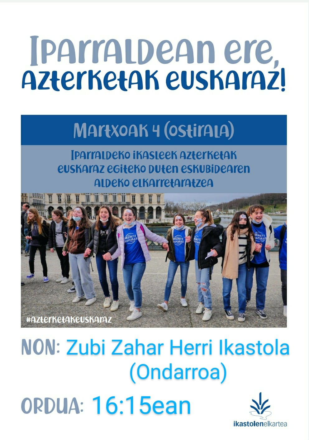 Ixena emoteko: etxelila@ondarroa.eus / 946134008 Martitzenetik baixakure 16:30-20:30