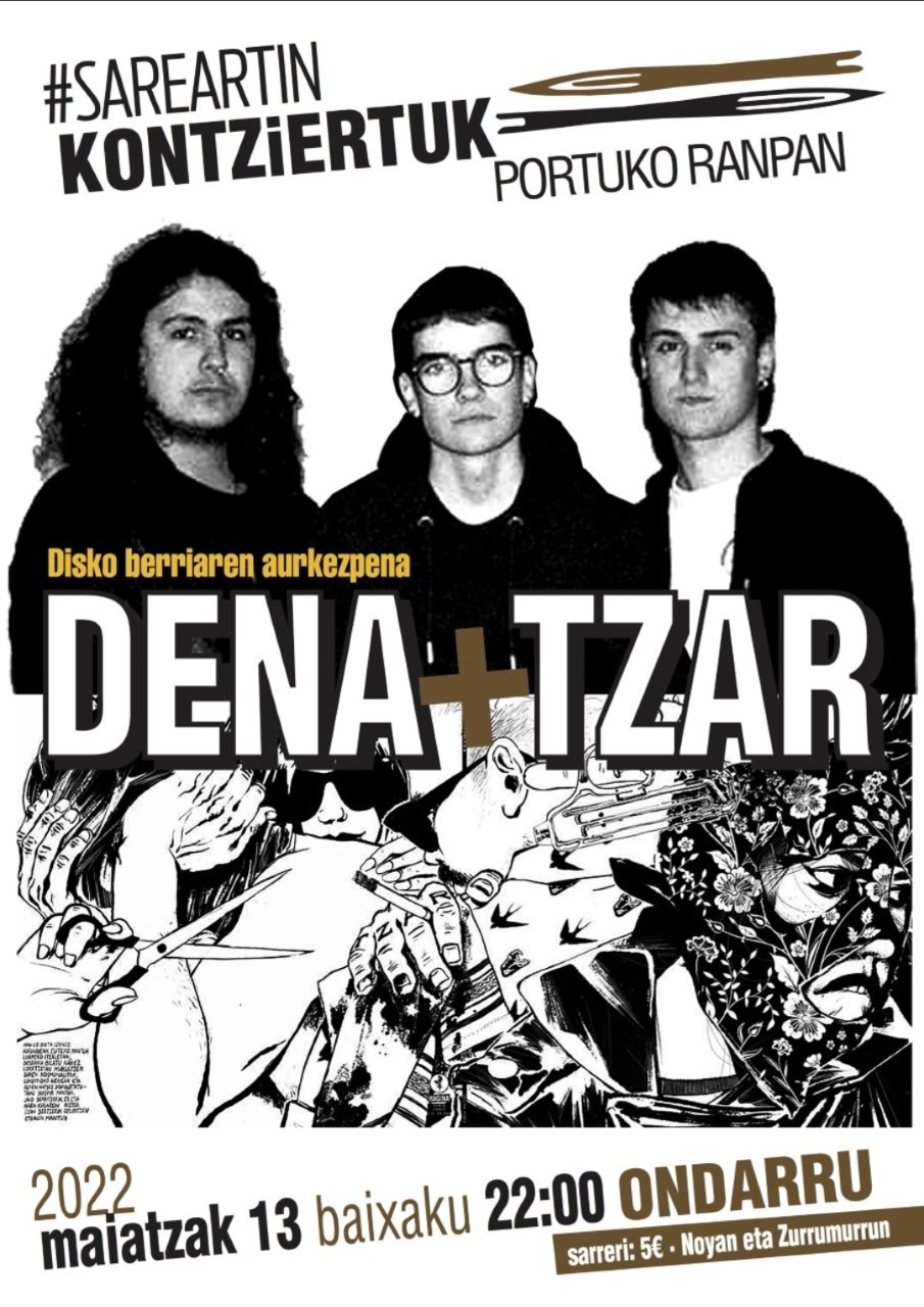 Herriko abeslaxak eukikouz ongo baixaku illuntzin gabeko 10 etatik aurrea Portuko Ranpan. Kontzertu honetan euran lan barrixe plazaratuko dabe DENA taldekuk. Sarrerak NOYA tabernan eta ZURRUMURRU liburu dendan ahalko diz eskuratu 5 euron trukin.