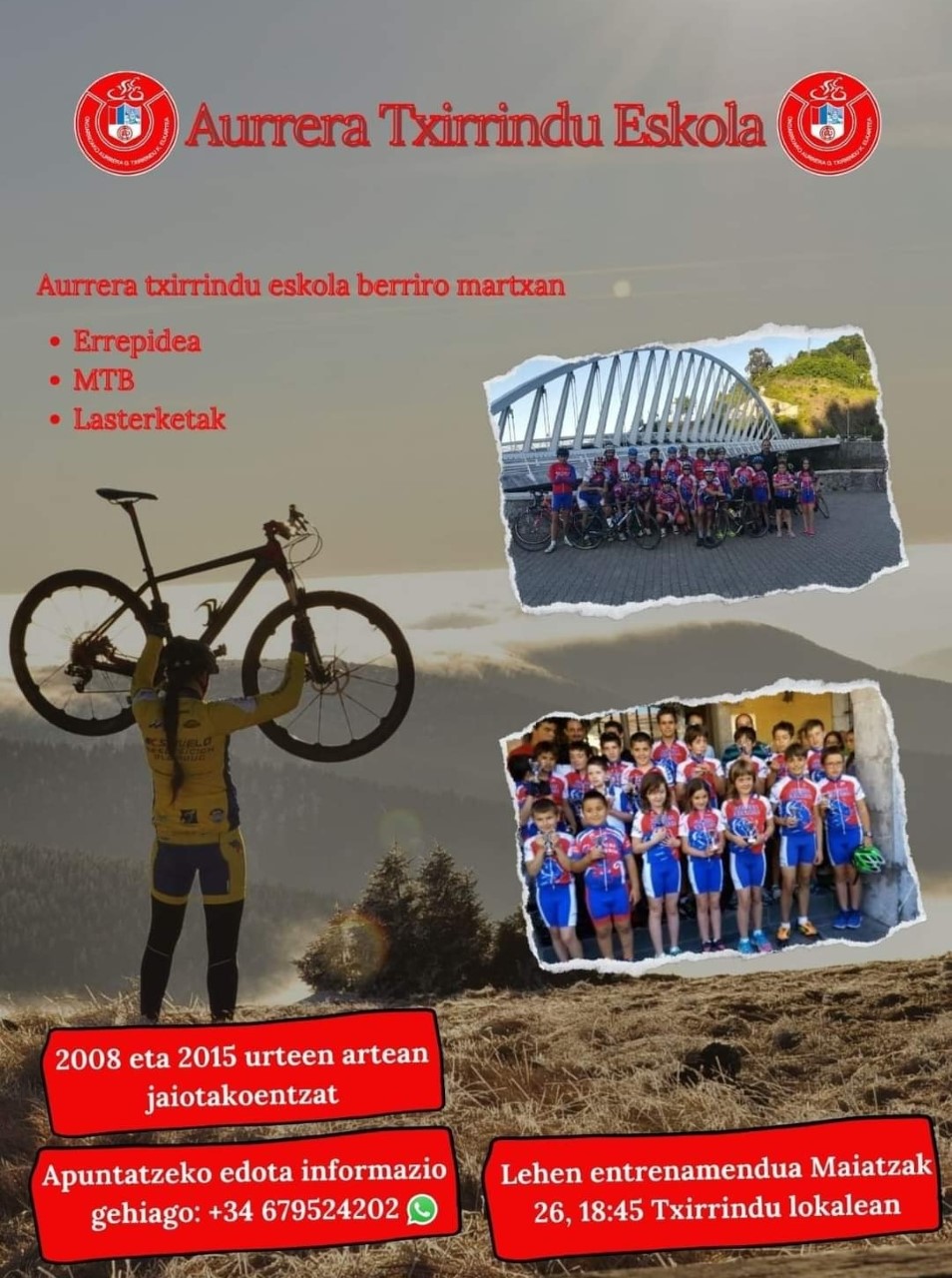 Albiste ona jaso dou gaur, geldialdi luze baten ondoren martxan hasi de osteabe AURRERA TXIRRINDU ESKOLI. Gustoku bazue bizikleti eta 2008 eta 2015 artin jaxotakuk bazaze ez galdu aukeraik, behian agertzen dan telefonure deitxu lelengotik.