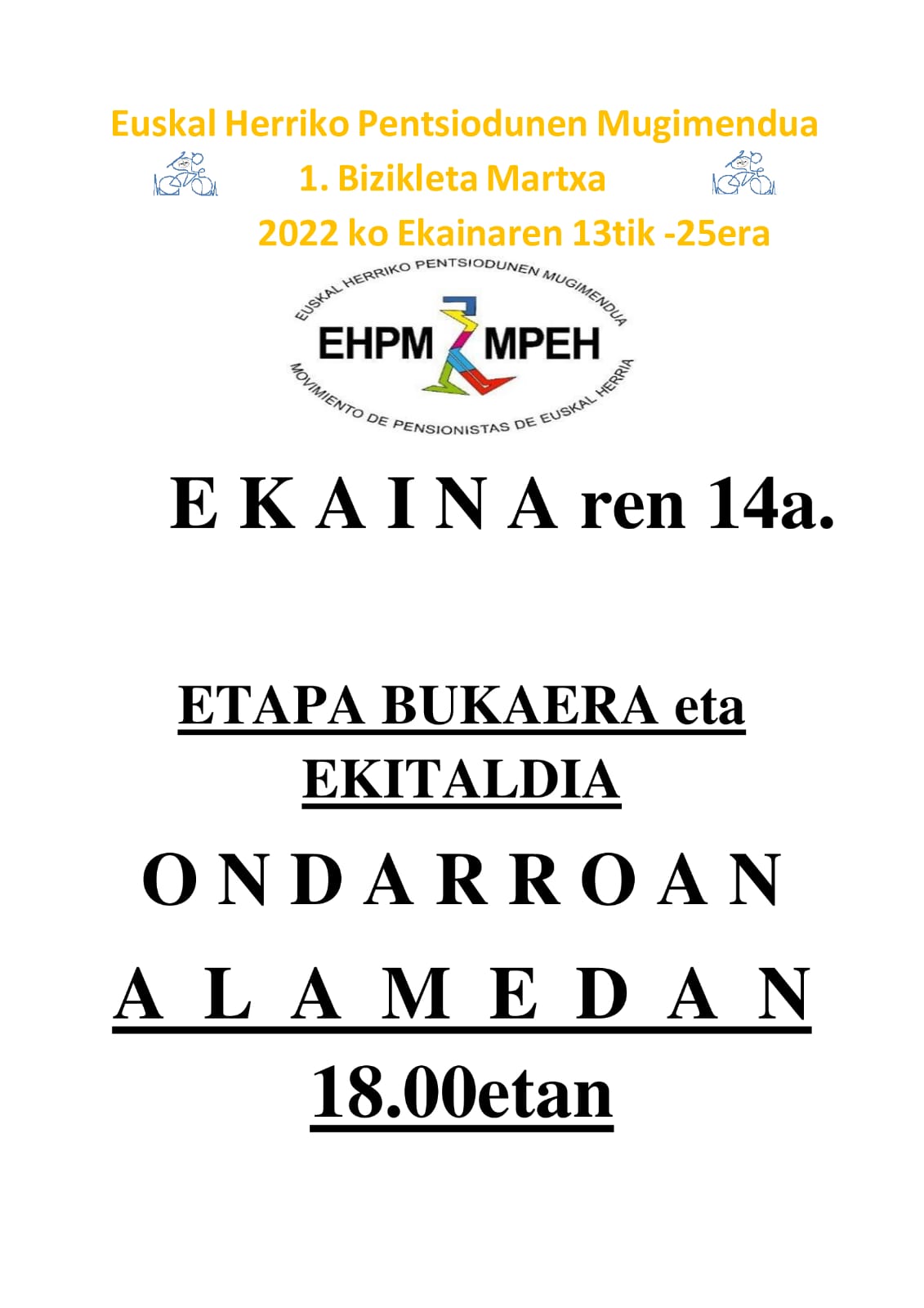 Horretxeatxik gaz hiriburuetako eta Martxa Txirrindulaxe pasaten dan eskualde eta herri guztixetako kolektibo edo mugimendu sozial guztiai zuzentzen, ekimen honi babesa emon eta bat egin dezaten. Ekainan 14a Azpeititik urtengo dau etapik, eta 18.00etan allako da Ondarruko ALAMEDA. Ongi etorri bero bat merezi dabe, hurreatu zeuek be!