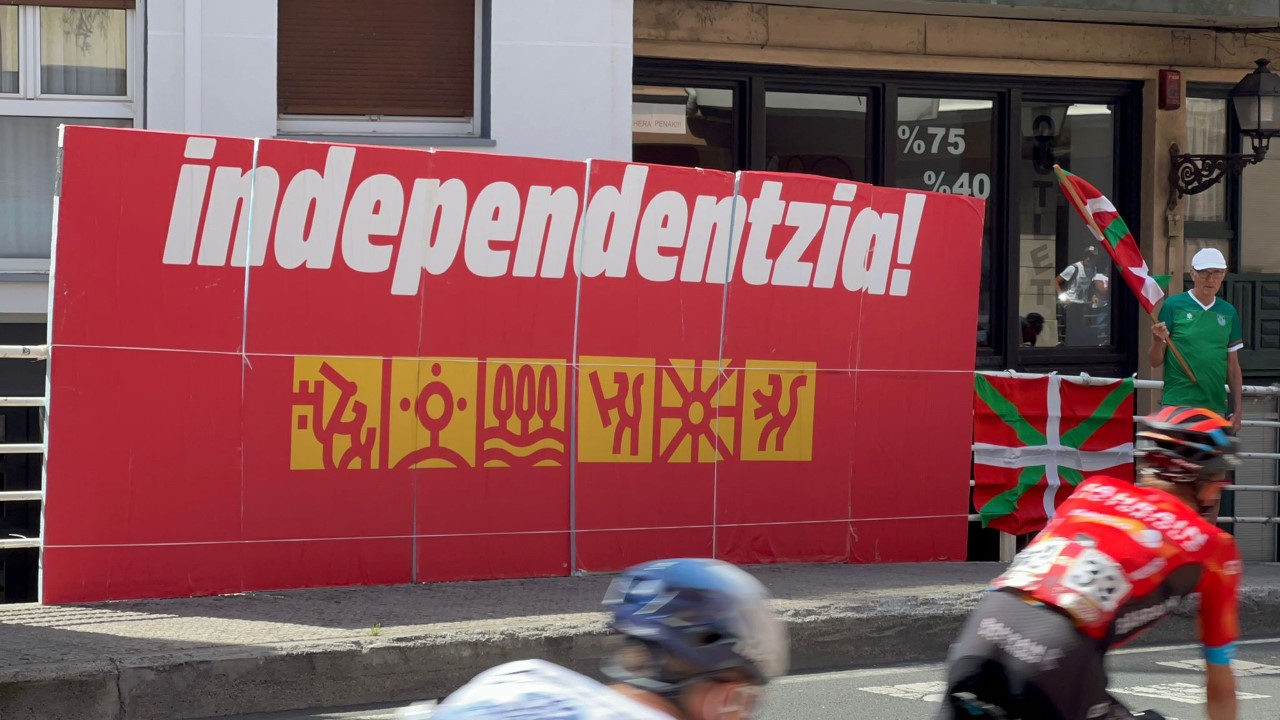Nahiz eta telebistak ta karrerako zuzendaritzik albo batea beatu daben, argi geatu de gaur karreri ze lurretatik ibili dan. Ikurriñak, Nafarruko erresumin ikurrak, presun aldeko banderolak… GUK, GEURI!