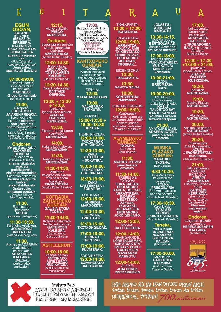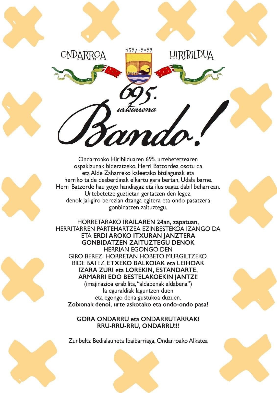 Datorren zapatun, (Irailak 24) erdiaroko VI. Jaxe ospatuko dou ondarrun. Lau urtetik behin etxen dan egun oso berezixe ixaten da, herrixe eta herritxarrak denporan atzea ein eta pilo bat jarduera eta ekintzaz gozatzeko aukeri eoten da.