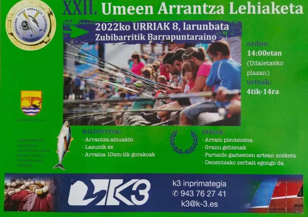Beste urte batez Arrigorri itxas arrantza elkartik antolatute, Umin arrantza lehiaketi eingo da herrixan (4 urtetik 14 urte bittartekuntzako). Zubi Barritxik Barramuzturre arteko ibilbidin ahalko da arrantza, eztau balixo lasunak atrapati, Amuaz bakarrik ahalko da arrantza eta arraiñan gutxiengo neurrixe 10 zentimetroku ixango da (hamen aldaketi eon da aurreko urtikin alderatute). Parte hartu nahi daben guztik, eguerdiko ordu bixetako Plaza musikan eon birdiz.