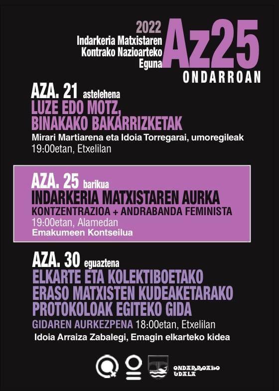 Azarun 25 in (baixaku) konzentraziñoi egongo da Alamedan arratsaldeko 7 retan Andrabanda Feministin laguntziaz, Ondarruko Emakumin kontseiluk antolatute.