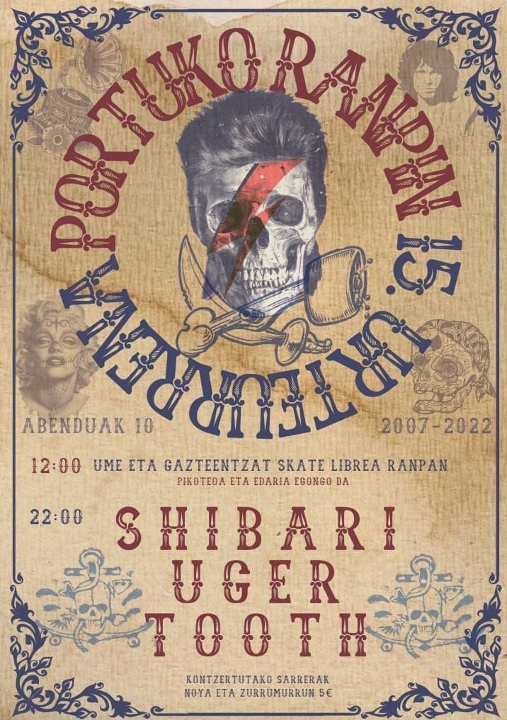 2007-2022, 15 urteko bixitxi dauke PORTUKO RANPIk eta hori ospatu beharra da. Abendun 10 (zapatu) hasi eguerdixan eta gabeko kontzertukin emongotze itxuri egunai. Ume eta gaztintzako Skate libri eta papeu egunez eta SHIBARI, UGER eta TOOTH taldin doiñuk entzungo diz gabaz. Sarrerak betiko lez NOYA tabernan eta ZURRUMURRU liburo dendan eongo diz salgai 5 euron trukin. Hurreatu zeu be!