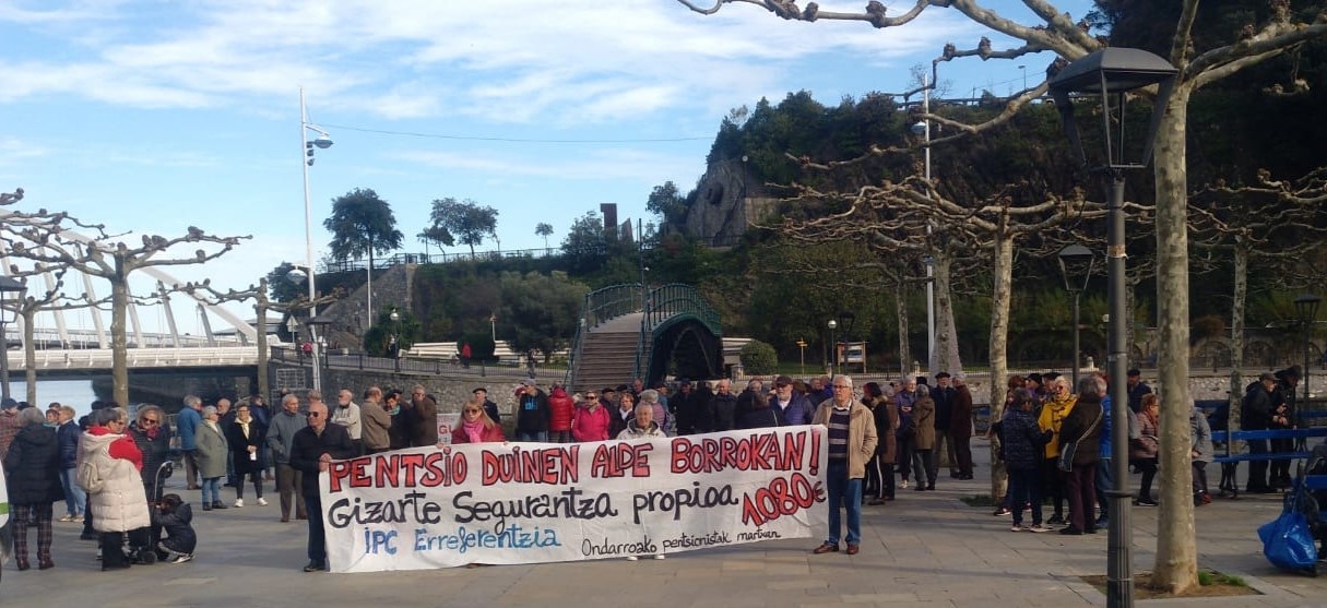 12 xak puntun batu diz gaur be Alamedan herriko PENTSIONISTAK. Gaur 145 lagun batu eidiz antolatzallin arabera. 20 minutu egon diz bertan eta astin egon dizen barrixak gai honen ingurun zabaldutxue. Datorren otsaillin 5 urte beteko diz mobilizaziñoikin hasi zinetik eta ekintza desbardiñak etxi pentsaten dabizela be argitxu dabe. Amaitzeko, eurak asmatako kanti abestu dabe eta datorren astelehenin be han eongo eidiz esanez amatxu dabe gaurko ekimena. Jo ta ke LORTU ARTE!