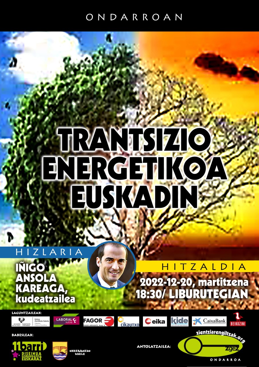 ZIENTZIAREN GILTZAK ELKARTIN abenduko hitzaldixe aldaketaz beteta dator. Lelengo ta behin tokixe aldatu dabe, ongun udal liburutegixan ixango dalako. Bigarren aldaketi egune ixango da, ohitxute geuazen astelehenetan ixaten zalako ta ongun martitzenea aldatu dabe. Hizlari lez, IÑIGO ANSOLA KAREAGA kudeatzalli eukikou berbetan ta gaxe TRANTSIZIÑOI ENERGETIKU ixango da. Hurreatu entzutea!