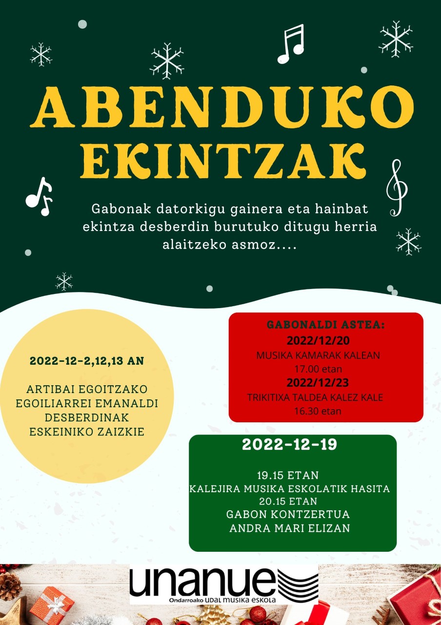 Egitarau hau bixalduzku UNANUE udal musika eskolatik. Gabonak hurreatzen duzen heinin musikeruk be euran doñuk kalea atateko desiaten egoten diz. Gozatu!