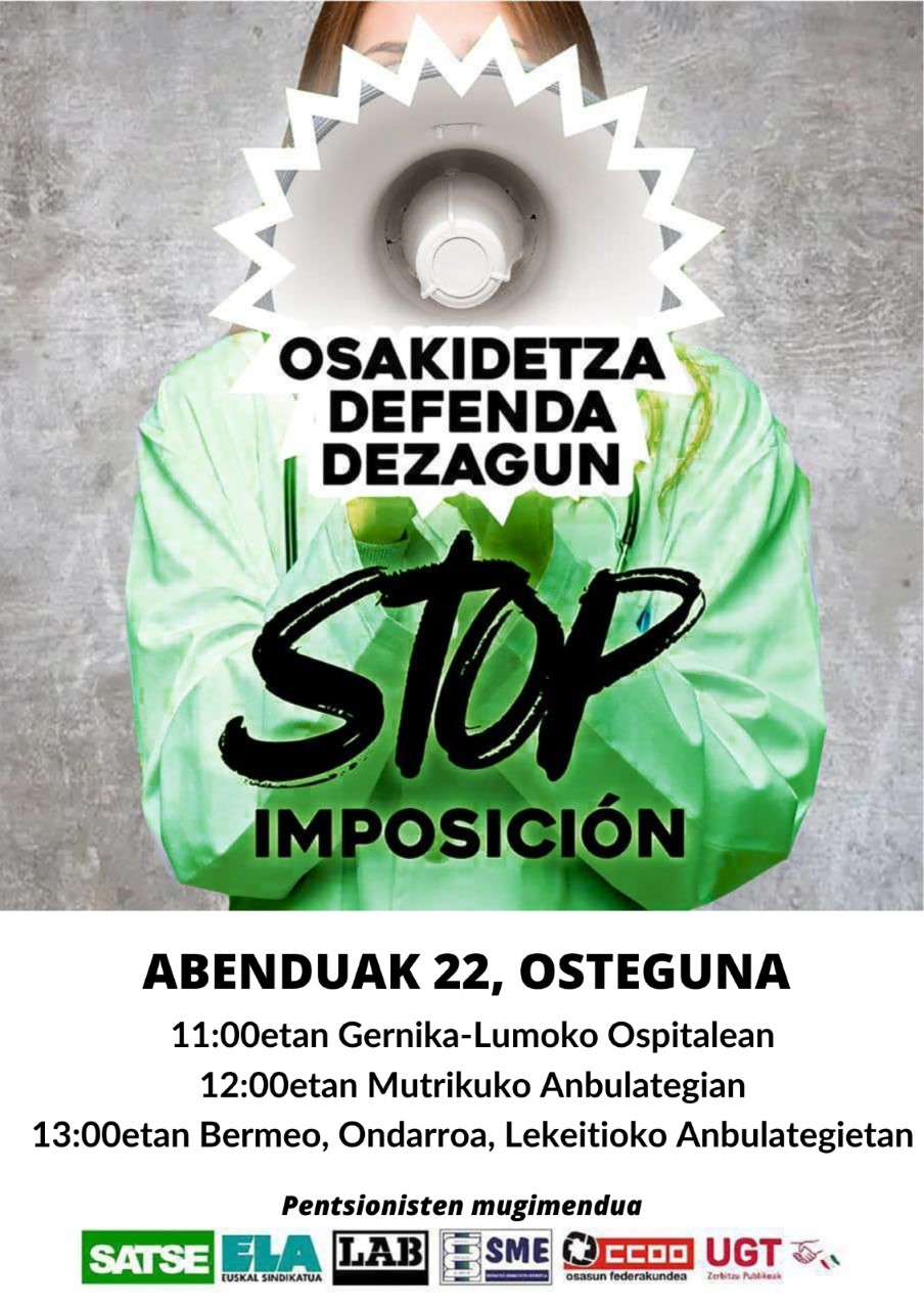 Osakidetzako langillin sindikatuk deitxute eta PENTSIONISTAn taldin babesaz, bixar eguerdiko ordu batetan konzentraziñoi eingo da Anbulatoxun aurrin OSAKIDETZA DEFENDA DEZAGUN lelopin. Osasungintza publiku zaindu bihir douelako babestu ein bihir dou holako ekimenak. Danoi ikutu etxen gatxun gaxe dalako, zeu be hurreatu !