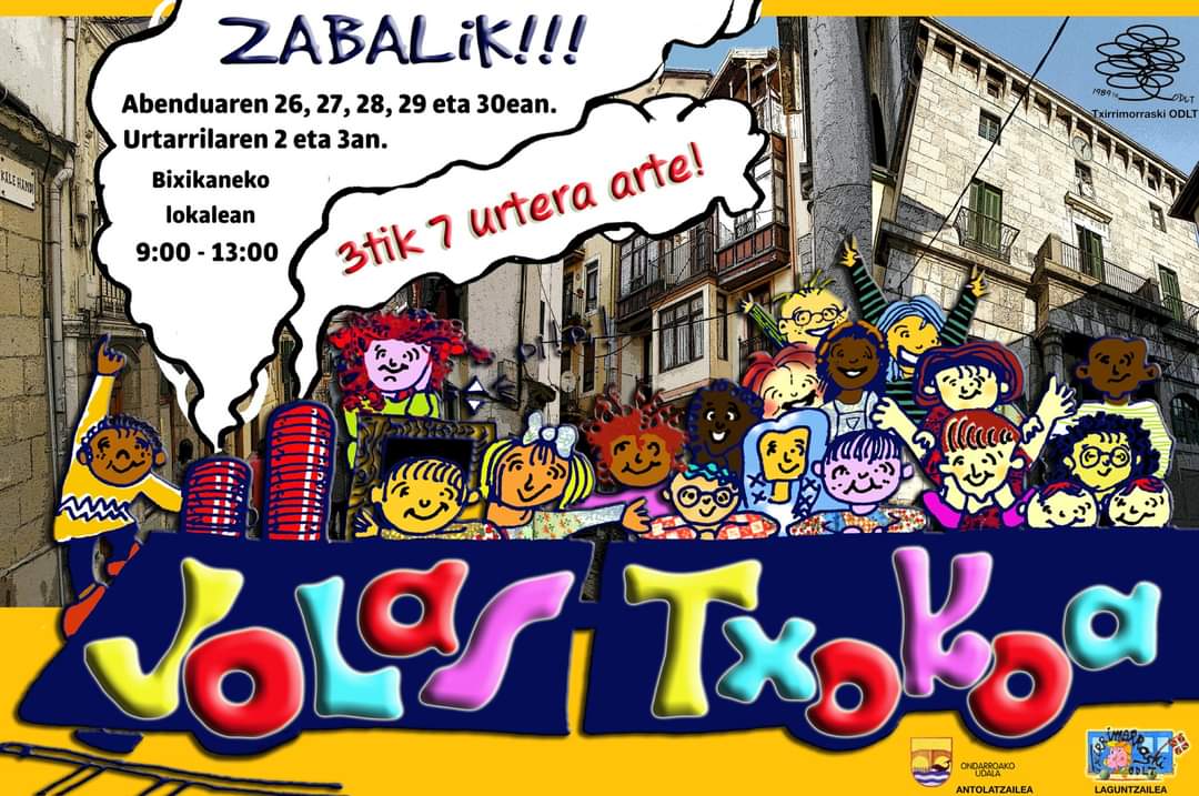 Gabonetako Jolas Txokoa antolatu dau udalak, Txirrimorraskiaz batea. Abendun 26, 27, 28, 29 eta 30in eta urtarrilan 2 eta 3an, 09:00etatik 13:00eta, Bixikaneko lokalin, 3tik 7 urtera arteko umintzat. Ixen emoti, lekun bertan.