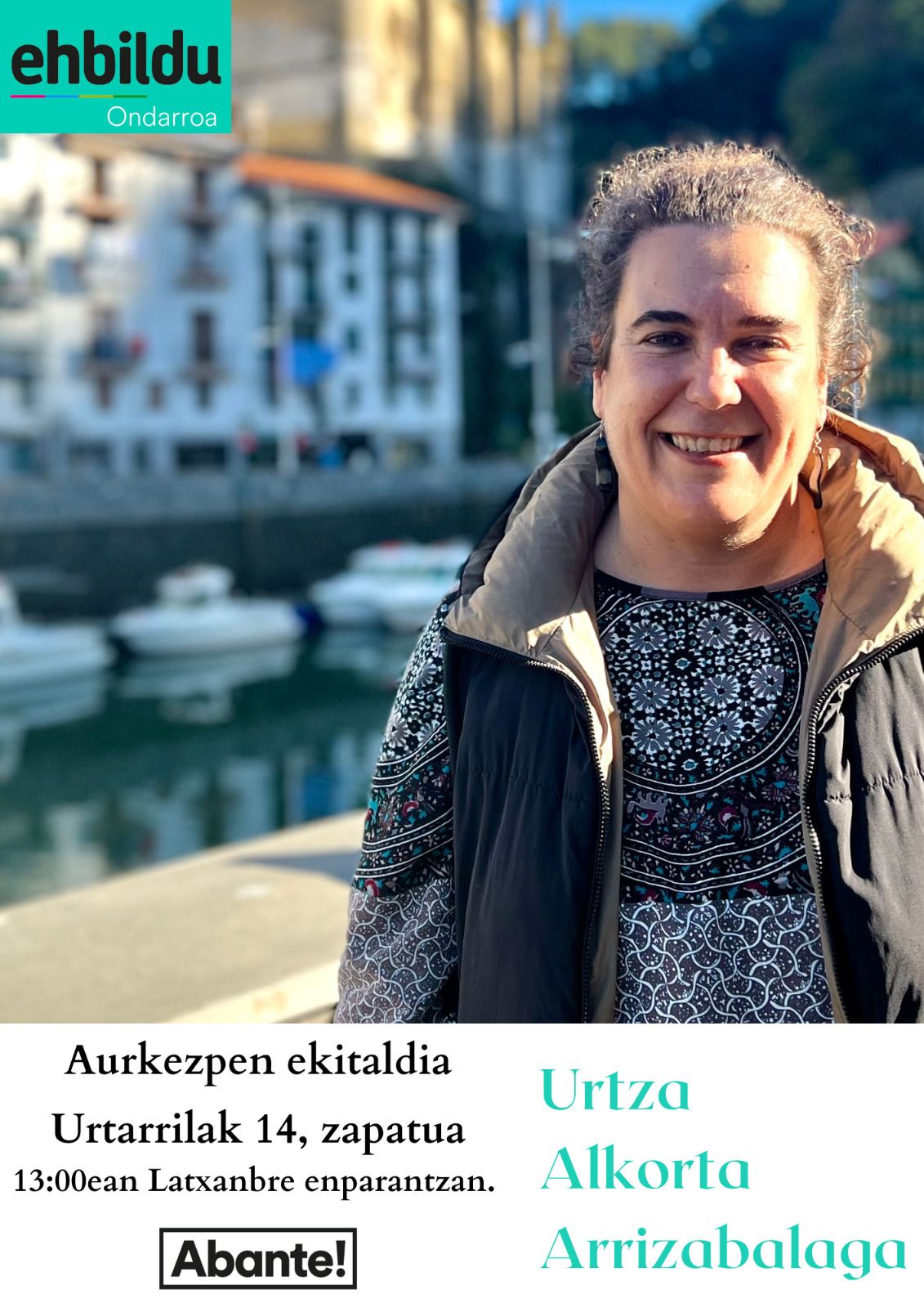 Dakixuen modure Urtza Alkorta Arrizabalaga ixango da EH Bildun zerrendaburu aurtengo maxatzeko udal hauteskunditan. Datorren zapatun, hilak 14, aurkezpen ekitaldixe eingo dou 13:00etan Latxanbre enparantzan. Gonbidatute zaze ekitaldire!