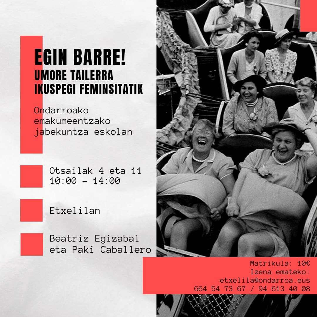 EGIN BARRE! Umore tallerra ikuspegi feministatik, Beatriz Egizabal eta Paki Caballeroaz.