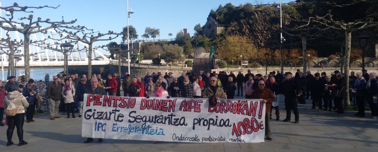 Han ikusi douz gaur be herriko PENTSIONISTAK pankarta atzin. Gaur eguzki ispixak lagun, 160 herrittar batu dizela esazku antolatzallik. 20 minutuz eon diz Alameda erdixan eta asteko barrixak kontatxue (mobilizaziñoin 5. urteurrena ospatzeko ekimen desbardiñak etxekotan daz). Beti lez, bertsuk abestuaz datorren astelehenin be bertan eongo dizela esanaz amatxu de gaurko enkarteladi. Jo ta Ke LORTU ARTE!