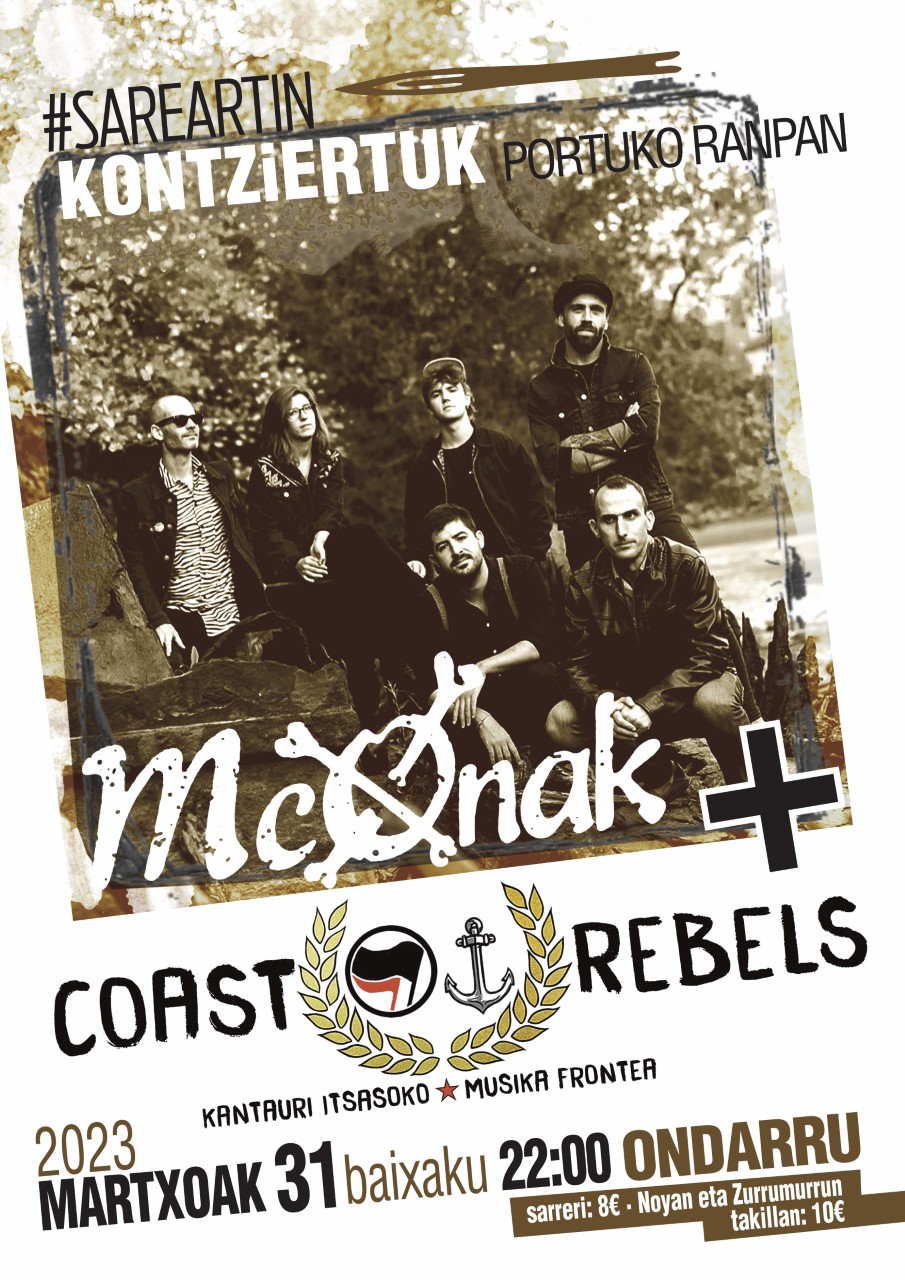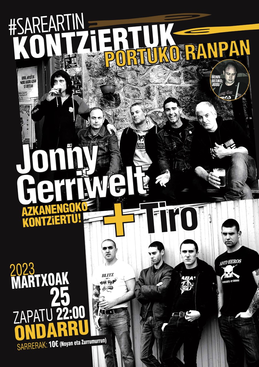 Honek diz hille honetan etxeko dizen kontzertuk Portuko ranpan, Martxoak 25 in JONNY GERRYWELT eta TIRO ta martxoak 31an Mc ONAK eta COAST REBELS, ta albisti zabaldu aurretik jakindou lelengokurako ez dala sarreraik geatzen (nuestro gozo en un pozo). Bigarreneako sarrerak nahi badozue, espabila, NOYA tabernan eta ZURRUMURRU liburu dendan eskuratu zeinkez 8 euron trukin.