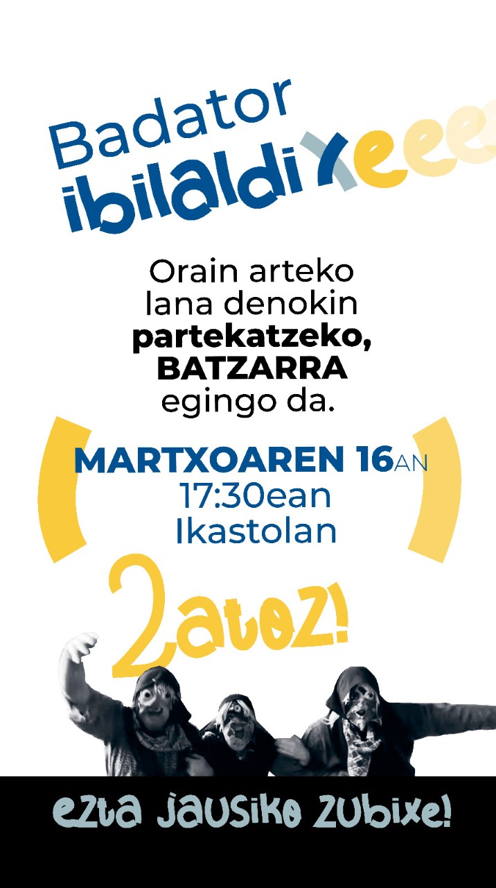IBILALDIXE hurreatzen dator eta motorrak berotzen duz, hori dala ta Martxoak 16 an (eguena) arratsaldeko 5:30 tan Zubi-Zahar herri ikastolan batzar bat antolatu dabe orain arteko eindako lanak danokin partekatzeko. Hurreatu zeu be! Badator ibilaldiXE!