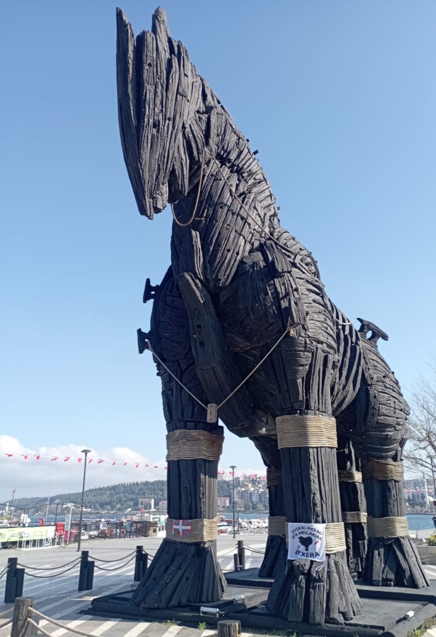 Gexenontzako ariñei da, bañe badaz euran oporrak uda aurretik hartzen dotxuenak be. Atzo bertan irudi hau jaso gendun TROYA herritxik (TURKIA) gure korreun. Ondarrutarroi asko gustaten gazku bidaiatzi, beste ohitxurak ezautzi, lagunak eitxi… bañe etxea buelta etxekuk gaz. Ondo ibili eta gozatu oporretan!