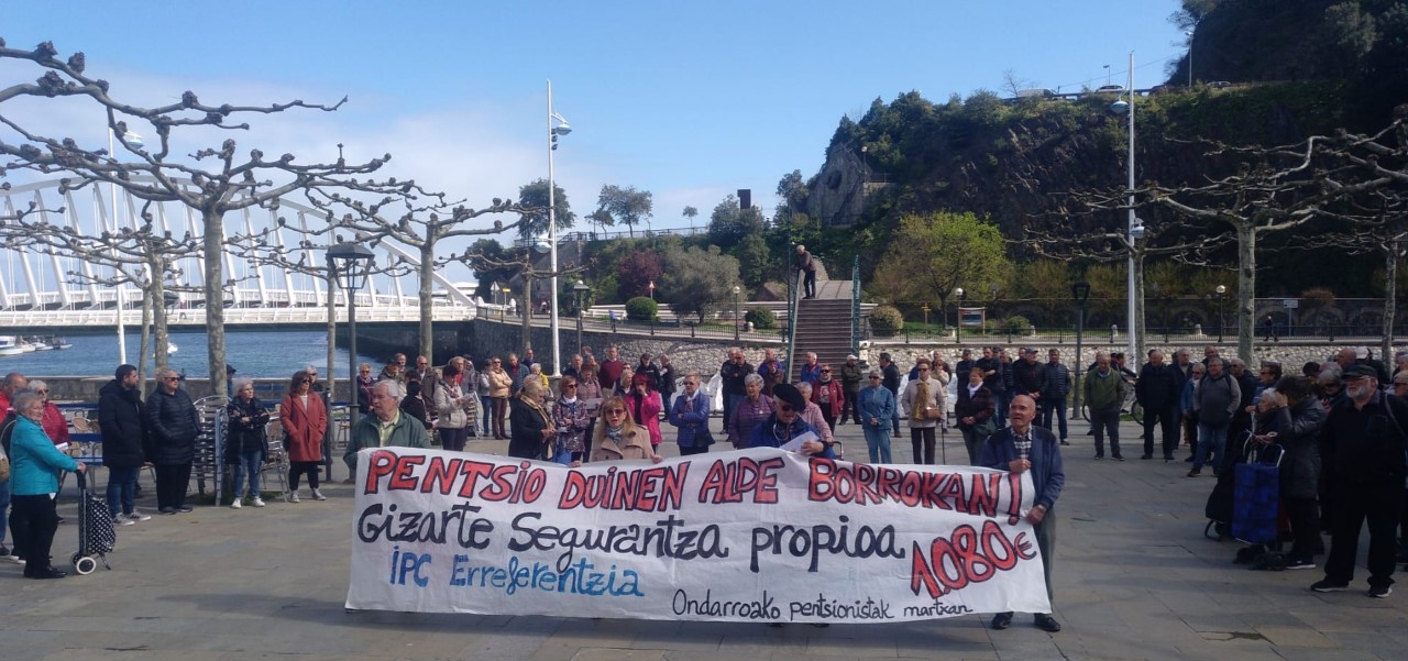 Han ikusi douz gaur be herriko PENTSIONISTAK pankarta atzin. Gaur egueldixe lagun, fresko bañe eguzki izpixan azpixan, gaur 170 lagun batu eidiz esazku antolakuntzatik (tartin, EH Bilduko bi zinegotzi). Nobedade lez, datorren astelehenin EZ eidiz batuko esan dozku (opor txiki batzuk hartuko eidabe), hurrengoko hitzordu apirilan 17 xan osteabe han eongo eidiz. Jo ta Ke PENTSIÑOI DUIÑAK LORTU ARTE!
