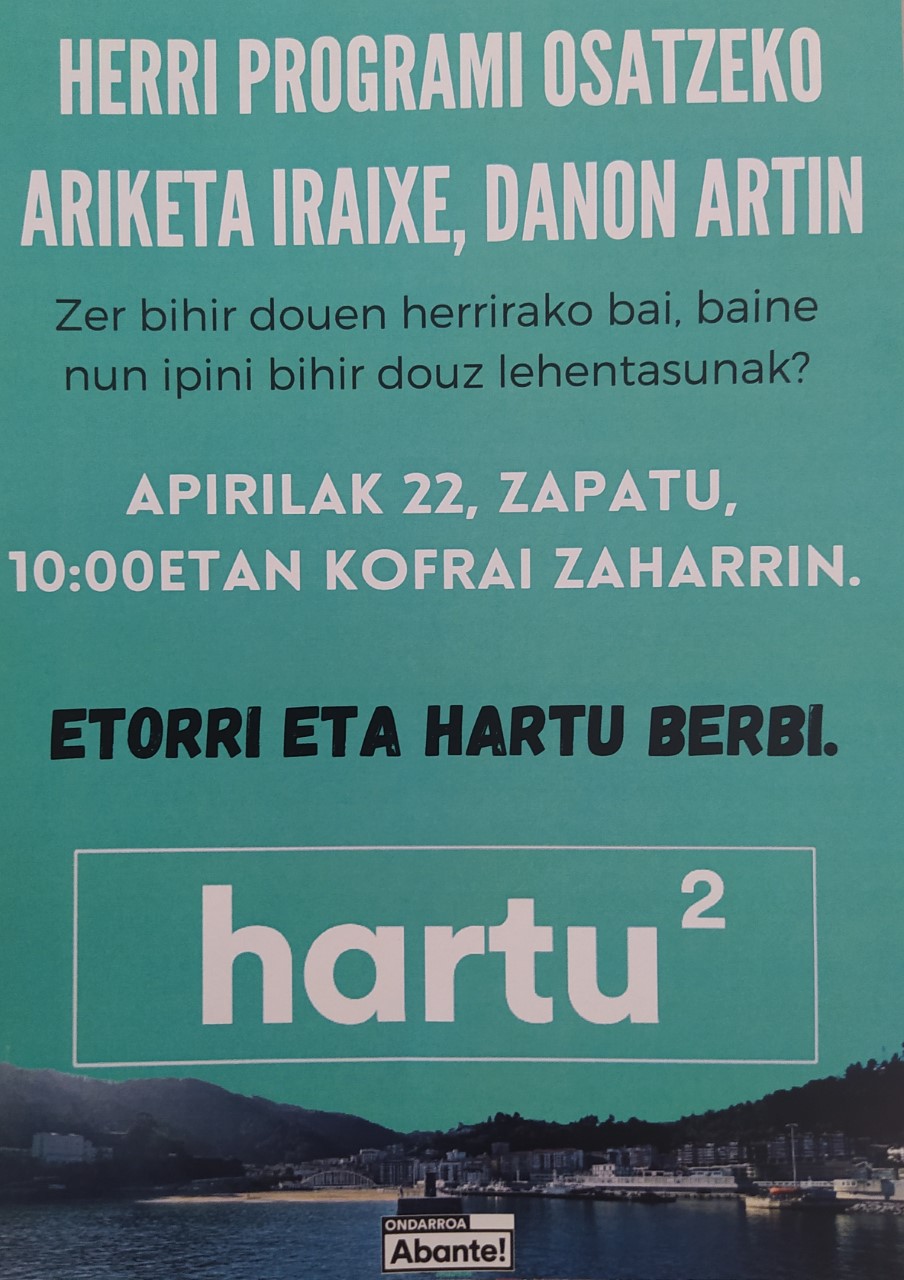 Apirilak 22 xan goxeko 10 etatik aurrea batuko gaz Kofrai Zaharrin lan saio iraixin. Zertaz berba eingodouen? ʜᴇʀʀɪᴋᴏ ᴇᴛᴀ ʜᴇʀʀɪᴛᴛᴀʀʀᴏɴ ʙᴇʜᴀʀʀɪᴢᴀɴᴀᴢ ɢᴀɪɴ, ᴢᴇɪɴᴛᴢᴜᴋ ɪxᴀɴ ʙɪʜɪʀ ᴅɪᴢ ʟᴇʜᴇɴᴛᴀꜱᴜɴᴀᴋ GURE HERRIXAN? Edonork hartu leike parte saiun, danon ideiak diz kontutan eukitxekuk.