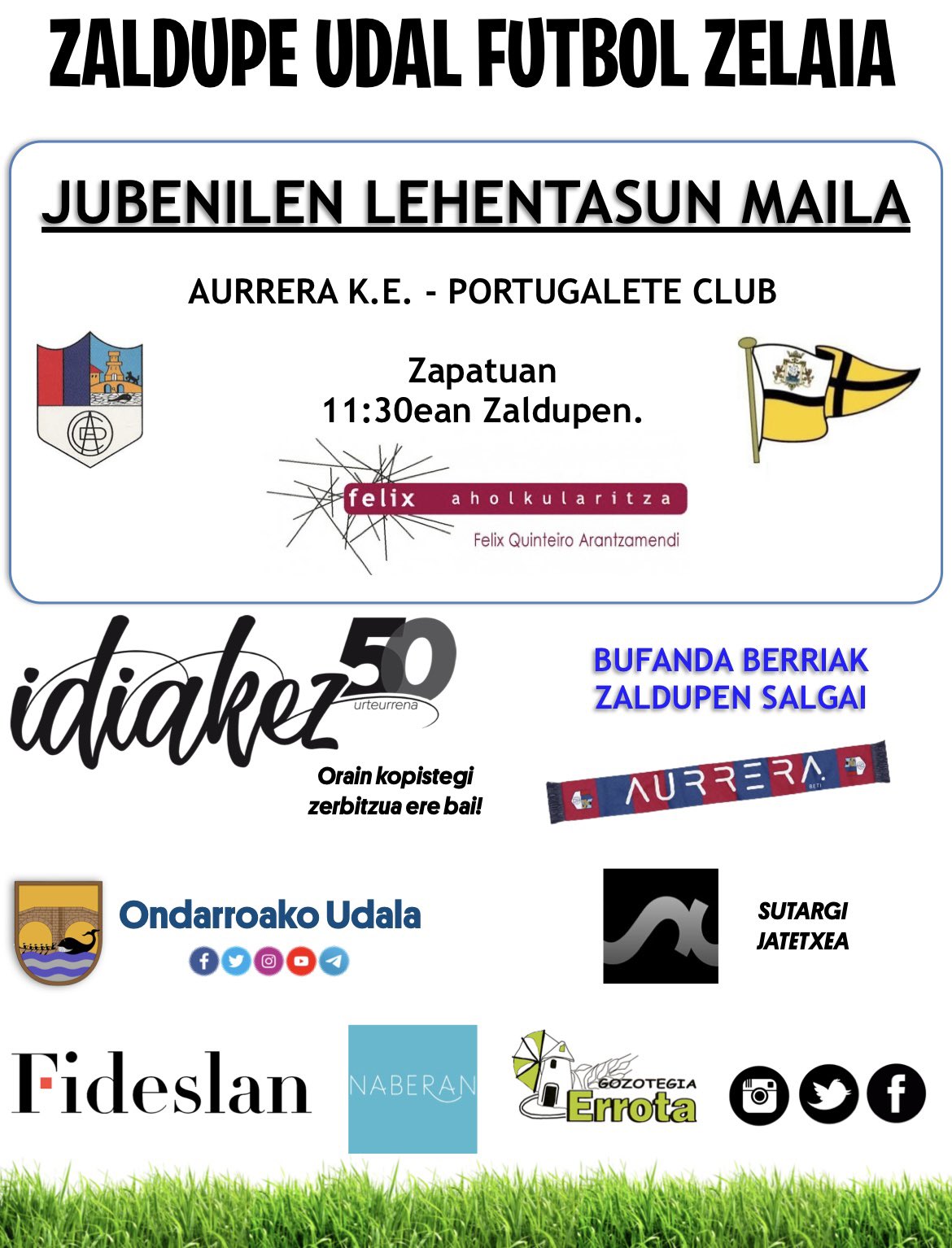 Ongo astin AURRERA K.E.ko talde bakarrak jokatuko dau partidu Zaldupe udal futbol zelaxan, azpixan dakazue noiz jokatuko daben. Aupa AURRERA TRA KA TRA!