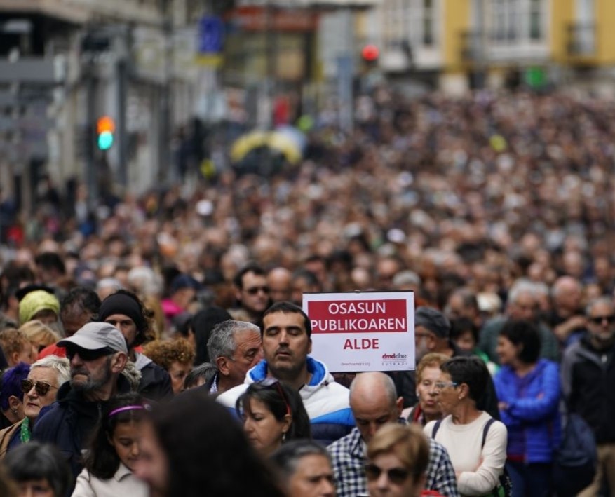 Erkidegoko hiriburutan pilla bat herrittarrek OSASUNGINTZA PUBLIKU ZAINDU lelopin kalea urten dabe, hor be presente eon gaz.