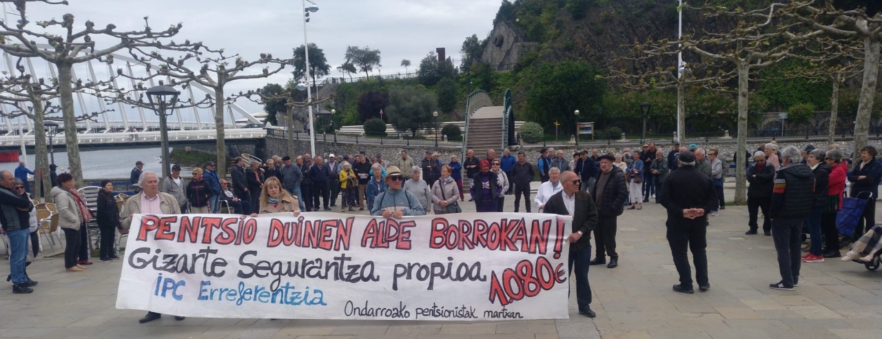 Gaur eguerdiko irudixe da azpixan ikusikozuena. Alamedan batu diz herriko PENTSIONISTAK (gaur 150 lagun batu eidiz antolatzallin arabera). 20 minutun egon diz bertan eta amaieran azaldu dabe datorren astelehenin EZ dizela batuko (Maiatzak 1 dalako), ta bat eingo dabe Langille egunin antolatzen dizen mobilizaziñoi desbardiñakin. JO ta KE LORTU ARTE! esanaz amatxu dabe ekitaldixe.