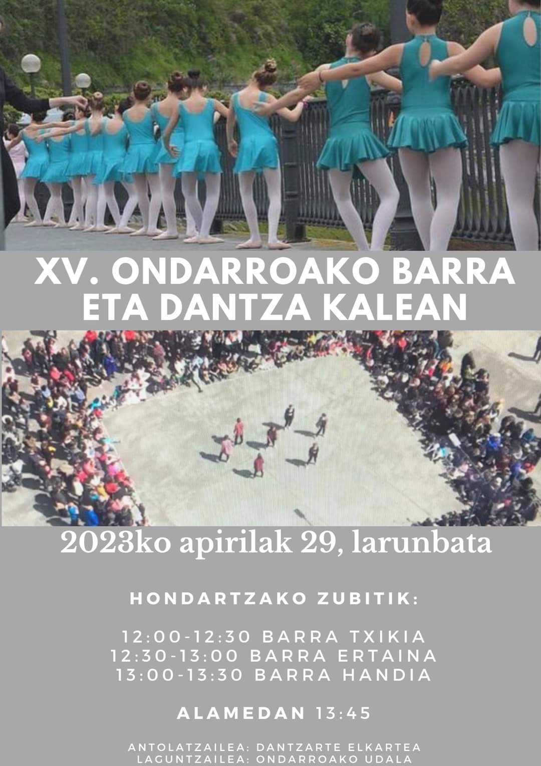 Hamen dakau beste behin herriko balleteko dantzaxan agerpena DANTZARTE elkartin eskutik. Eguerdiko 12 xetan hasi eta 1:30 xak bittartin ikusikouz hondartzako zubi parin, gero Alamedan eskeiniko dabe amaieri. Hurreatu gure artistak ikustea!