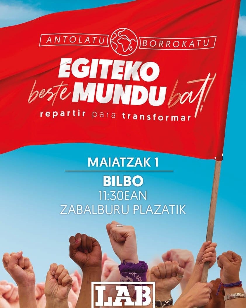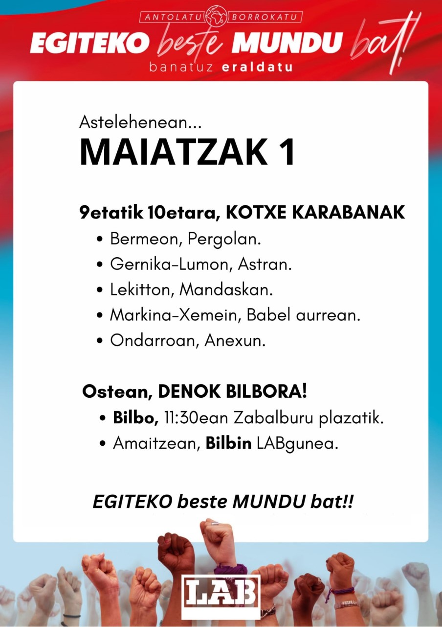 Ta egun honetako,LAB sindikatutik deixe zabaldu dabe Bilboko manifa juteko kotxe karabanetan, Ondarrutik irteeri anexun ixango da.