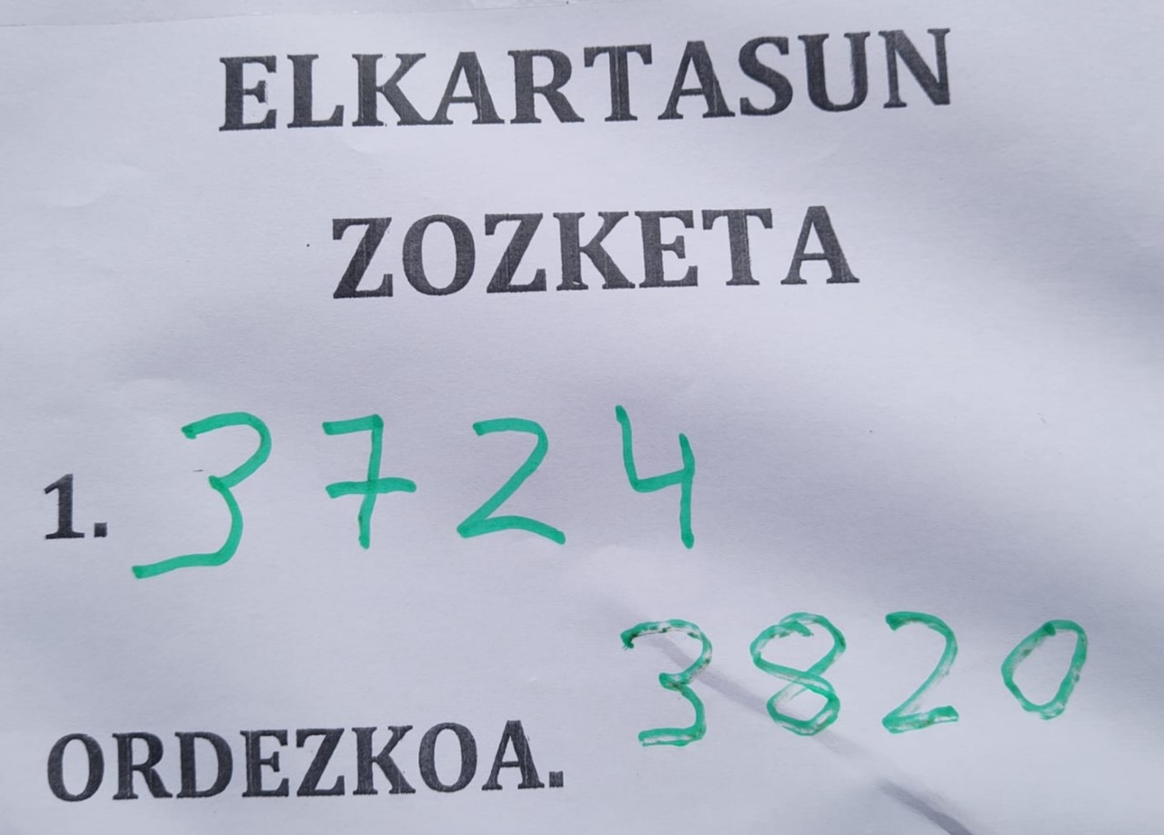 Azpixan agertzen dizen zenbakixak diz irabazline eta ordezku. Zoixonak eta ondo ein irabazliai!