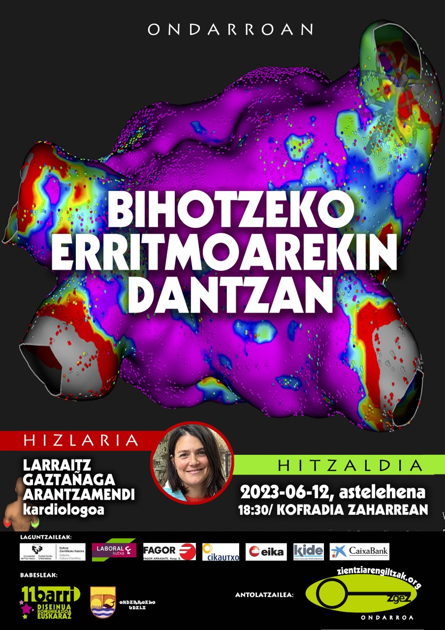 Zientziaren giltzak elkartin ekaineko hitzaldixe eukikou ongoxe astelehenin kofrai Zaharrin arratsaldeko 6:30 tan. Gaxe osasunan ingurun ixango da eta ixenburu hau ipinitze BIHOTZEKO ERRITMOAREKIN DANTZAN!. Hizlari lez, LARRAITZ GAZTAÑAGA ARANTZAMENDI kardiologu ixango da. Gauza interesgarrixak kontakotxule ez dakau dudaik, hurreatu entzutea.