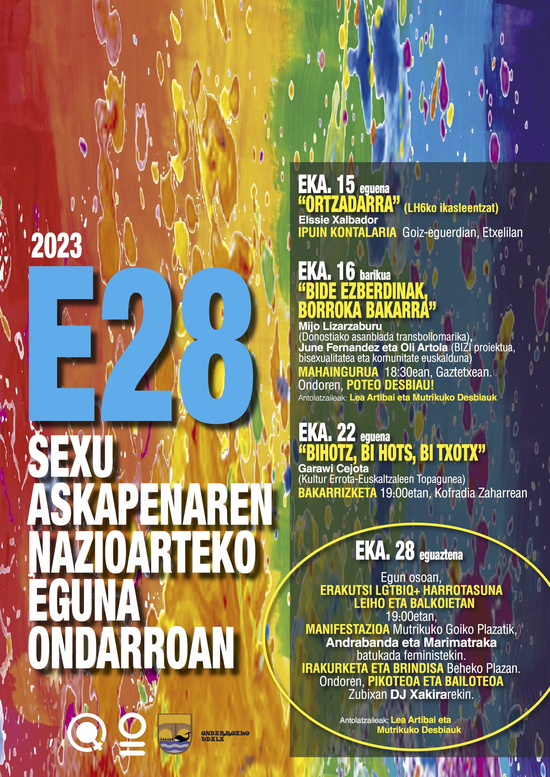 Ekainan 28 xan ospatzen da mundu guztin SEXU ASKAPENAREN NAZIOARTEKO EGUNE ta horreaz egunaz lotute herrixan hainbat ekimen eingo diz. Beheko kartelin dakazue egitarau osu, ipuin kontalaxak, mahai inguru, poteu….Ospakizune ta borroki uztartuz mundu aske baten ametstu!