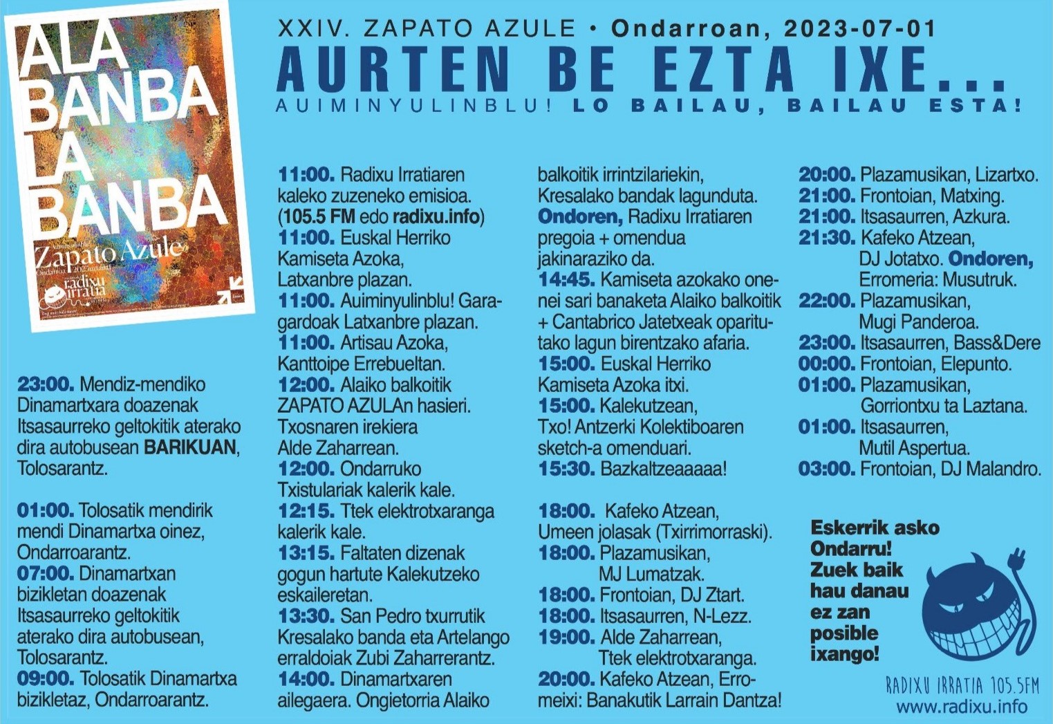 Aurten be ez eida ixer diñue Zapato Azuleko antolatzallik ta guk kartela ikusi douenin be bat gatoz eurak esandakuaz. Ia zer diñozuen zeuek!